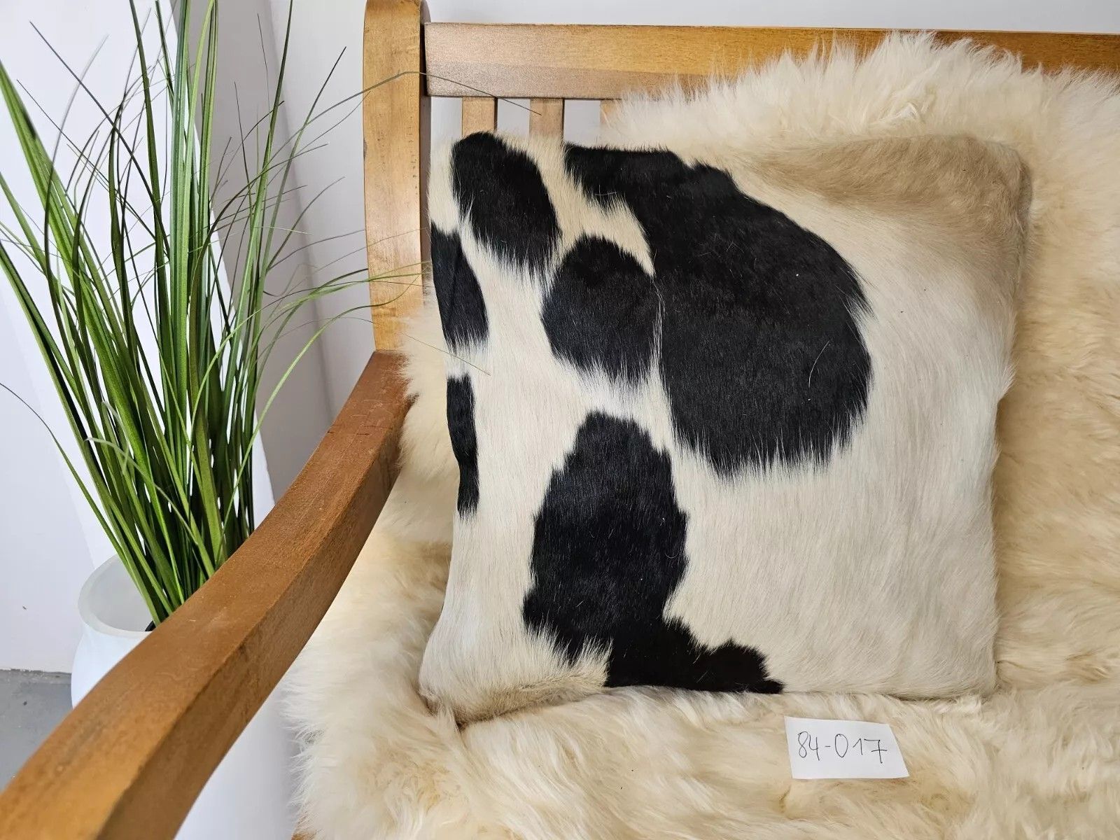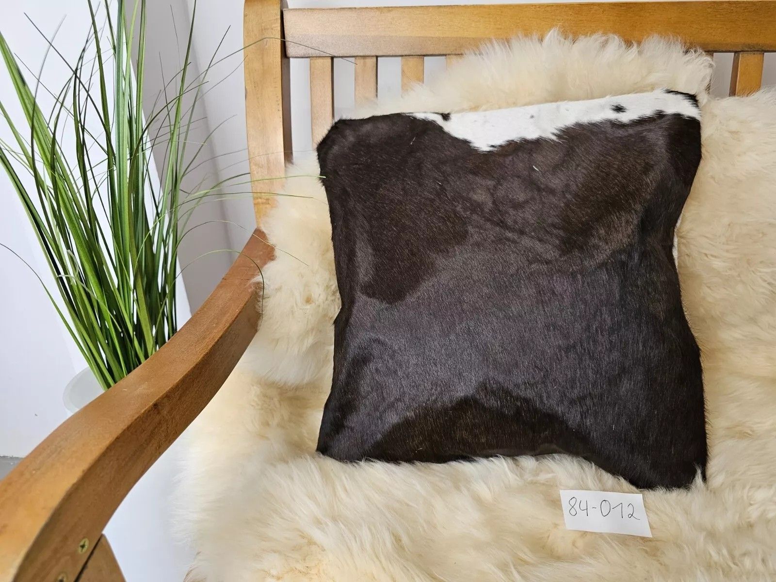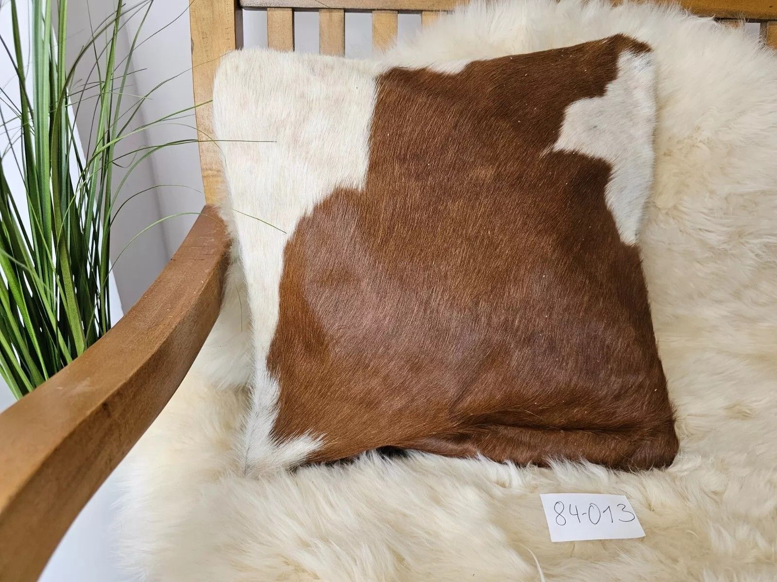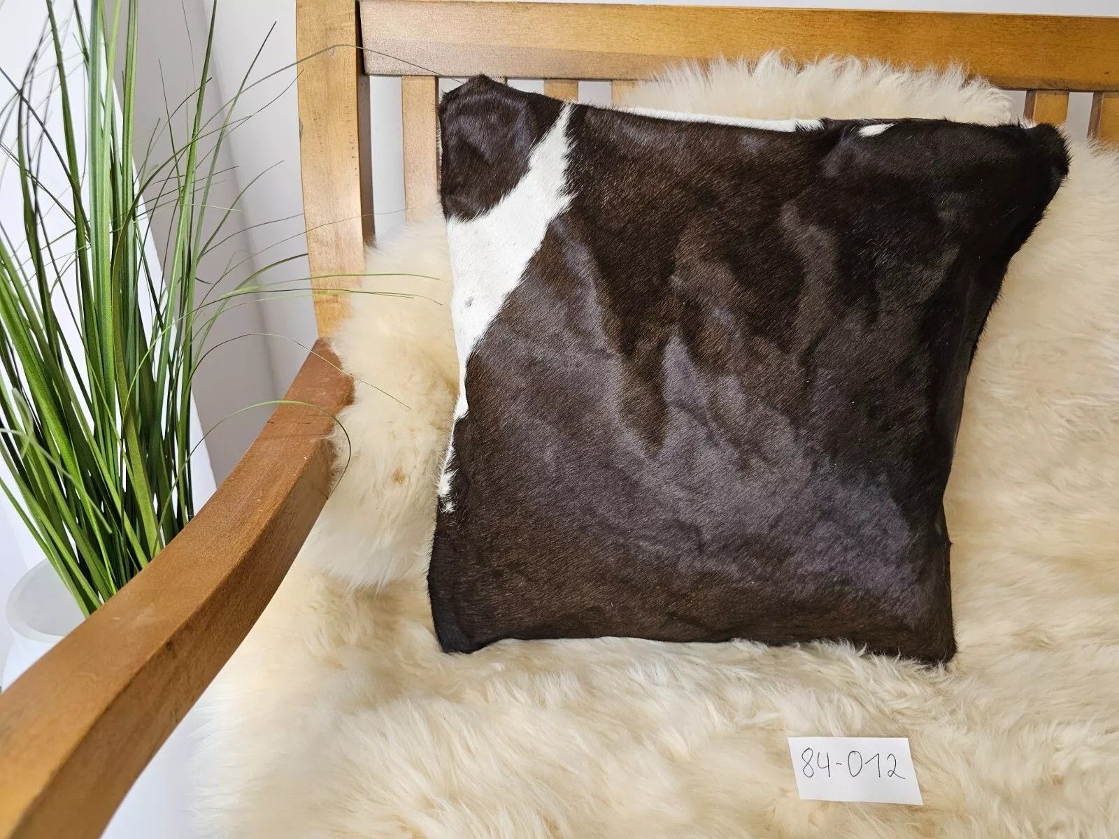 Handgefertigtes Kuhkissen vereint rustikalen Charme mit praktischer Funktionalität. Das Kissen ist aus hochwertigem, weichem Kuhfell gefertigt. Jedes Kissen ist ein Einzelstück, das sich durch seine einzigartigen Muster und Details auszeichnet. Ein verdeckter Reißverschluss auf der Rückseite ermögli