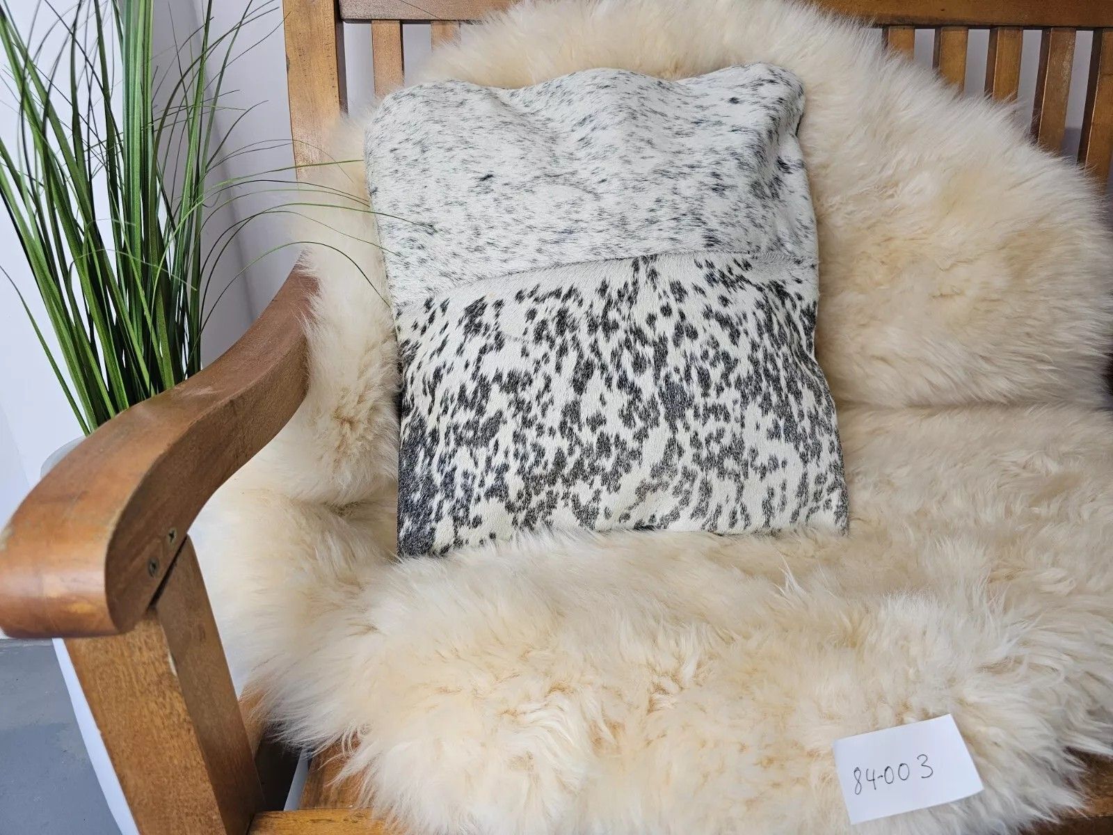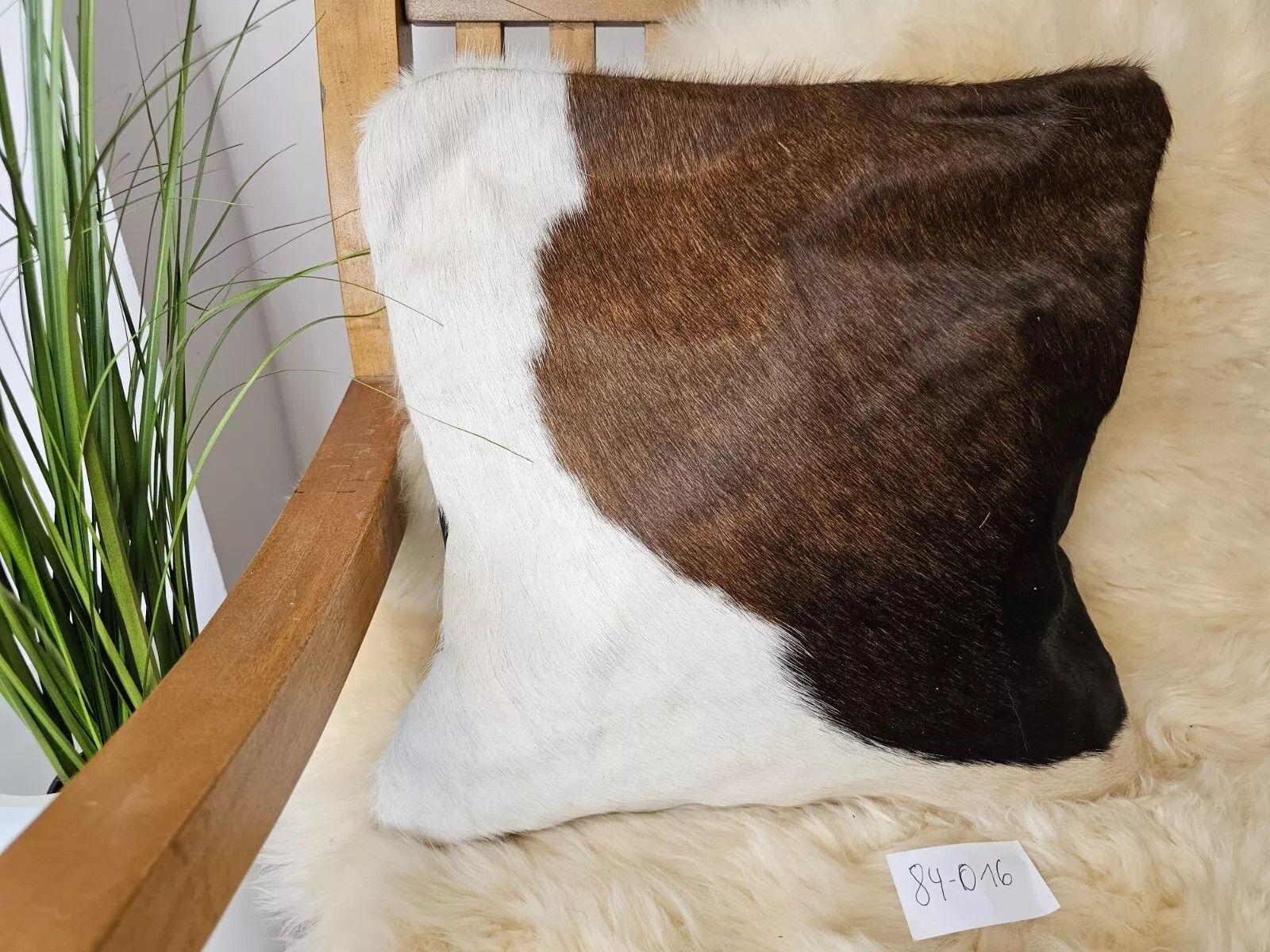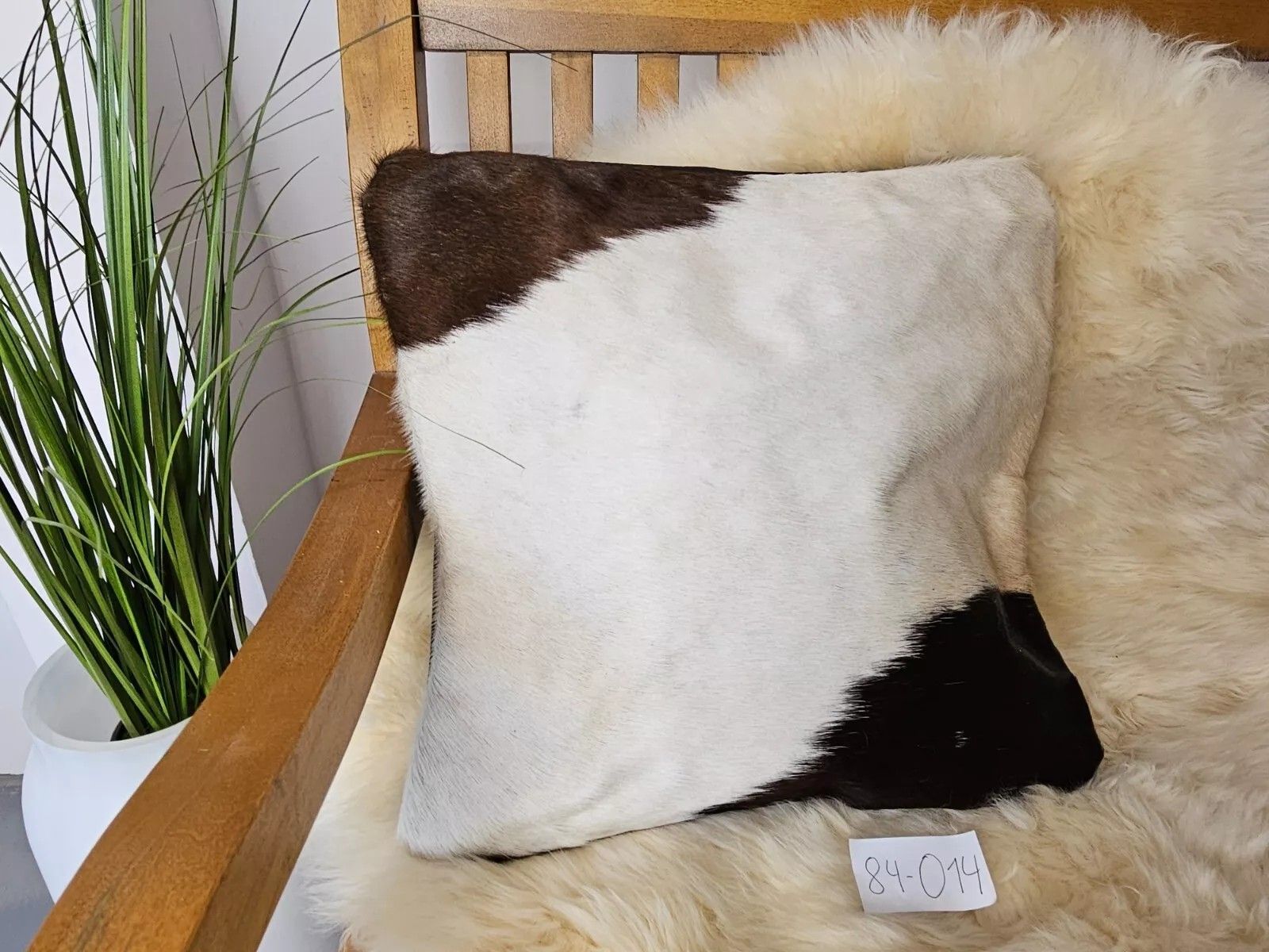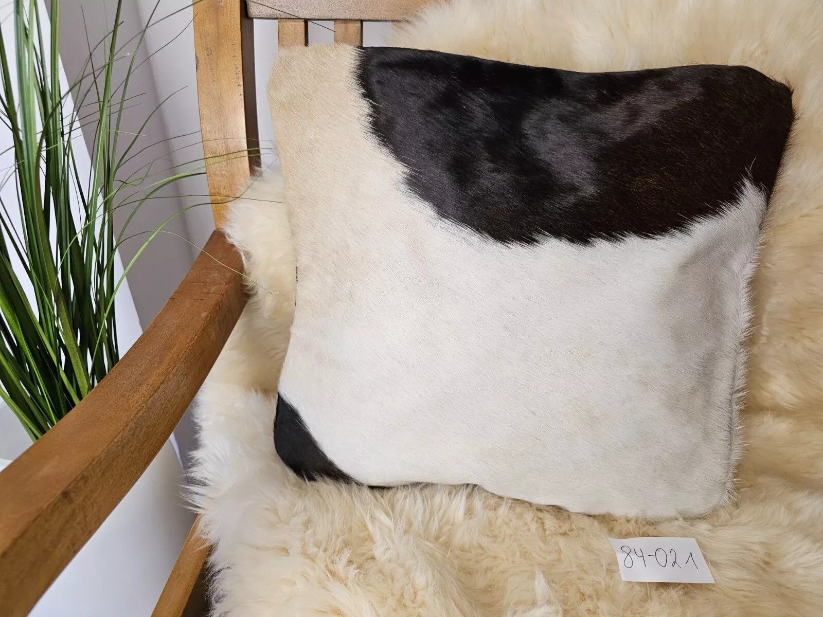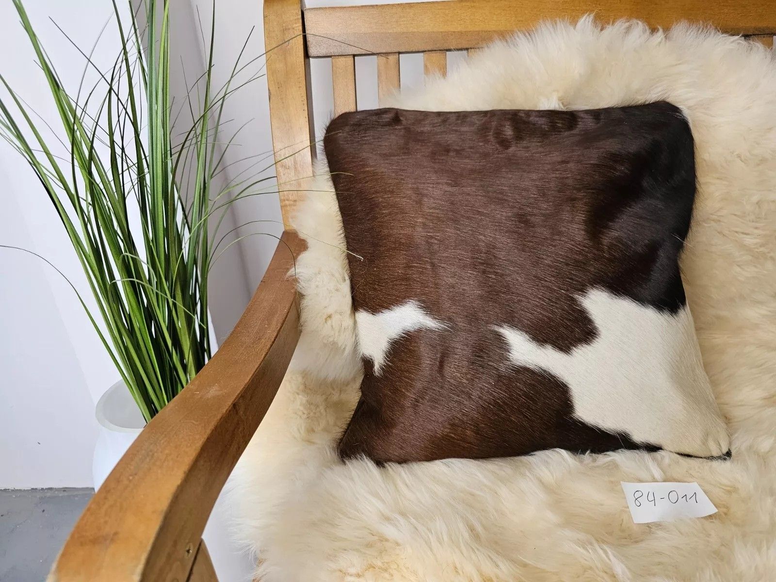 Handgefertigtes Kuhkissen vereint rustikalen Charme mit praktischer Funktionalität. Das Kissen ist aus hochwertigem, weichem Kuhfell gefertigt. Jedes Kissen ist ein Einzelstück, das sich durch seine einzigartigen Muster und Details auszeichnet. Ein verdeckter Reißverschluss auf der Rückseite ermögli