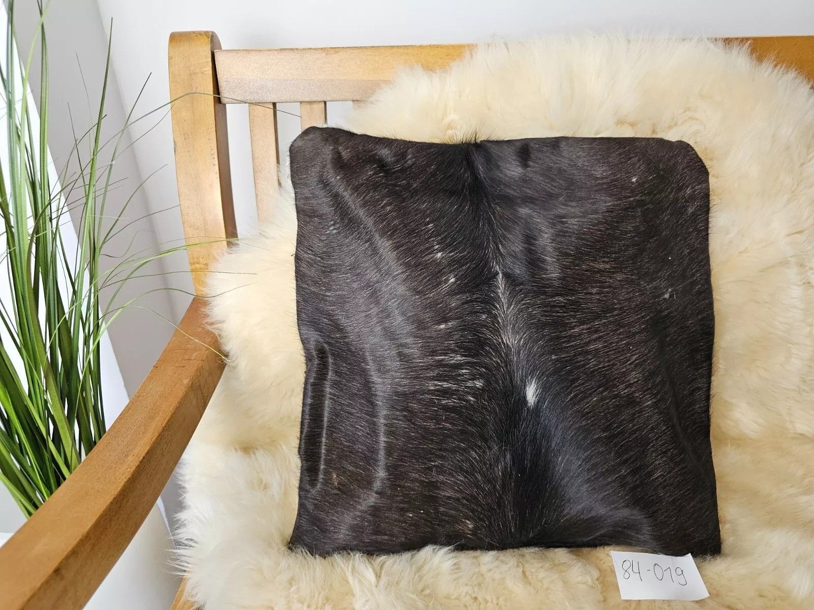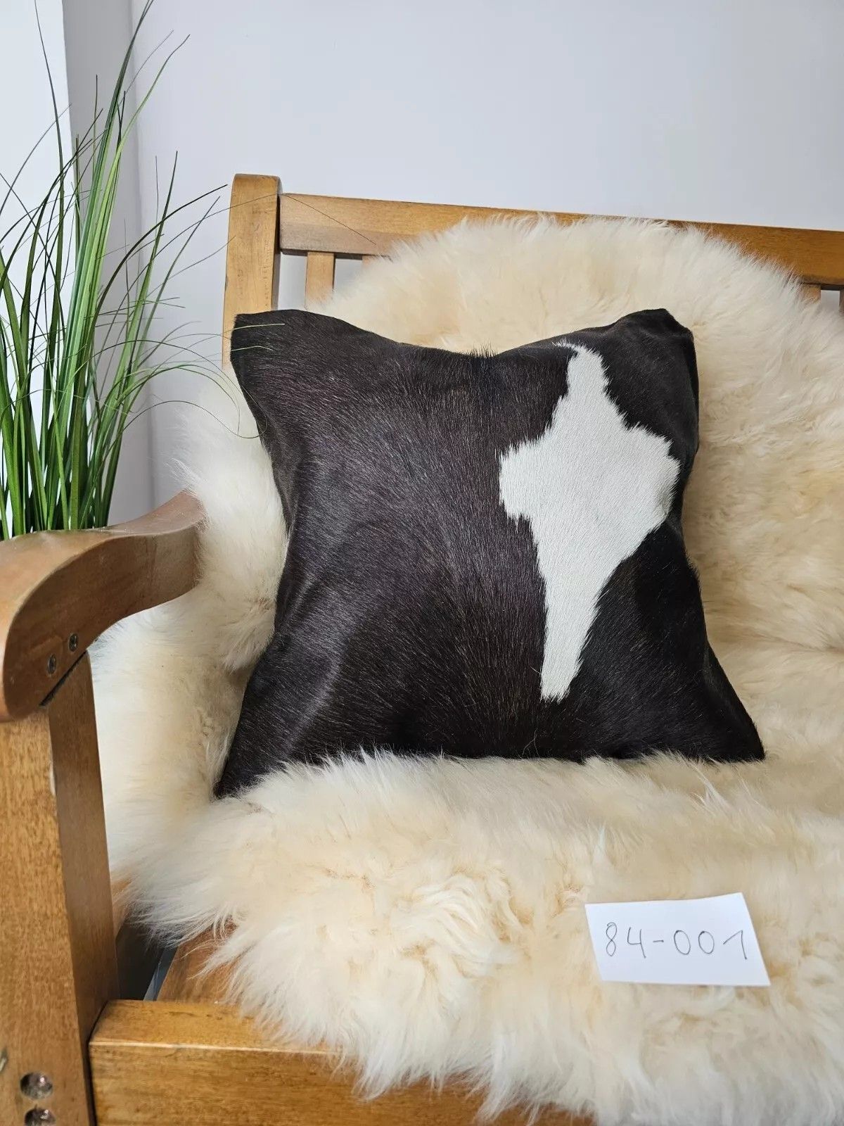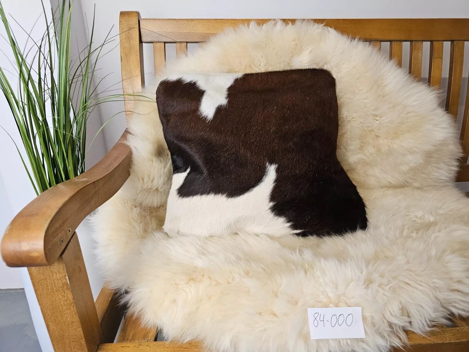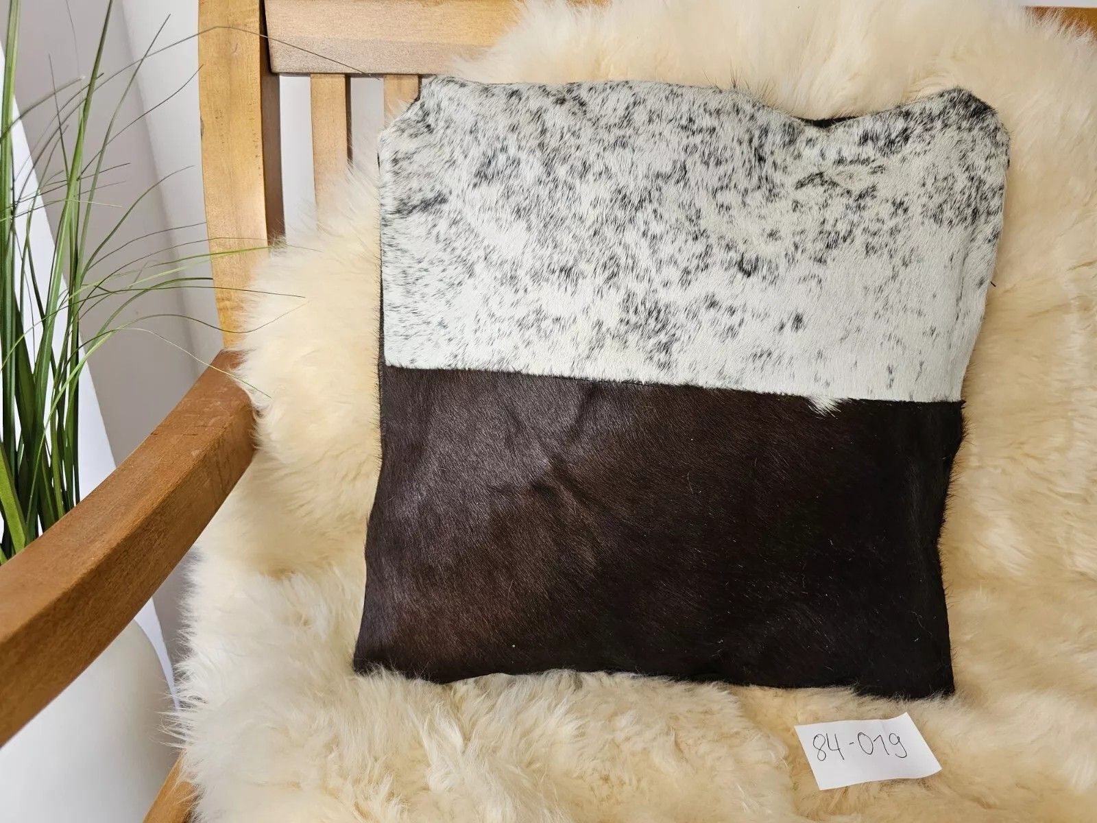 Handgefertigtes Kuhkissen vereint rustikalen Charme mit praktischer Funktionalität. Das Kissen ist aus hochwertigem, weichem Kuhfell gefertigt. Jedes Kissen ist ein Einzelstück, das sich durch seine einzigartigen Muster und Details auszeichnet. Ein verdeckter Reißverschluss auf der Rückseite ermögli