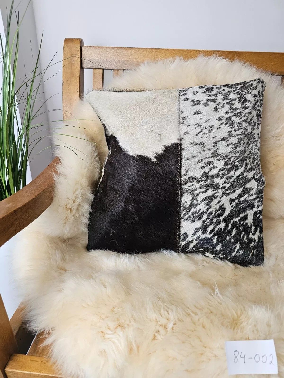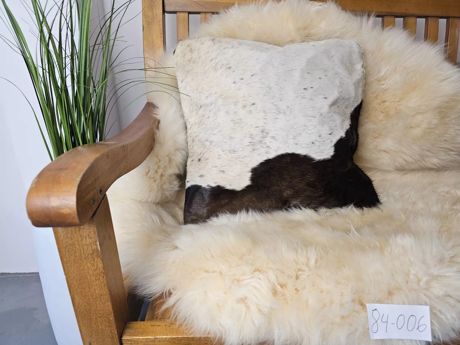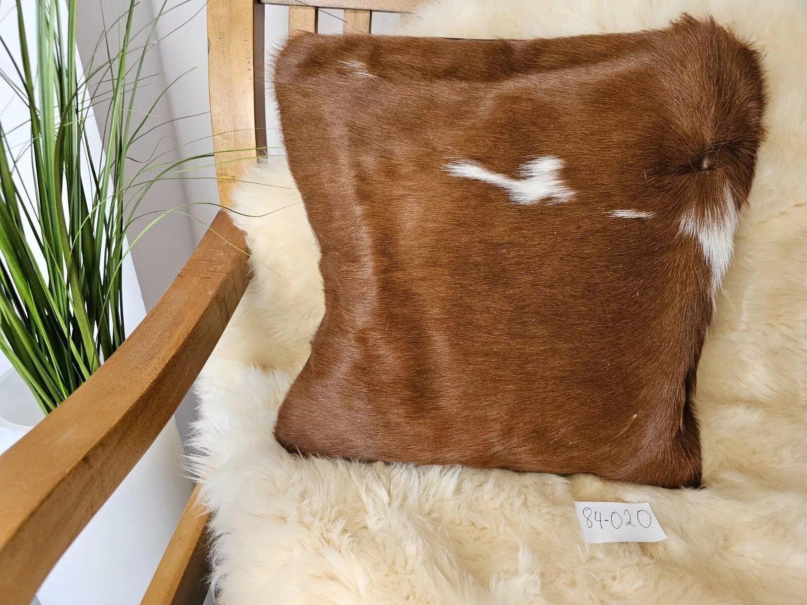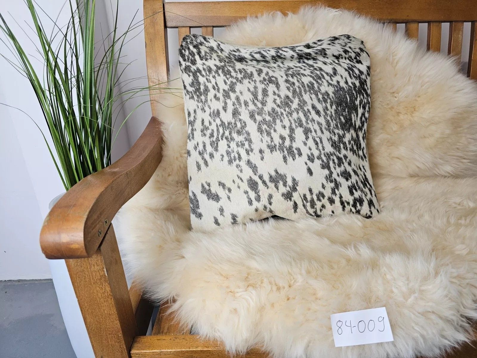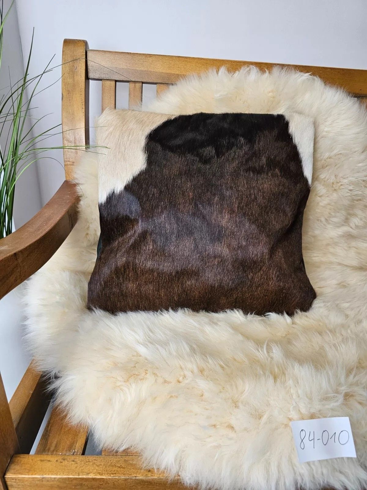 Handgefertigtes Kuhkissen vereint rustikalen Charme mit praktischer Funktionalität. Das Kissen ist aus hochwertigem, weichem Kuhfell gefertigt. Jedes Kissen ist ein Einzelstück, das sich durch seine einzigartigen Muster und Details auszeichnet. Ein verdeckter Reißverschluss auf der Rückseite ermögli