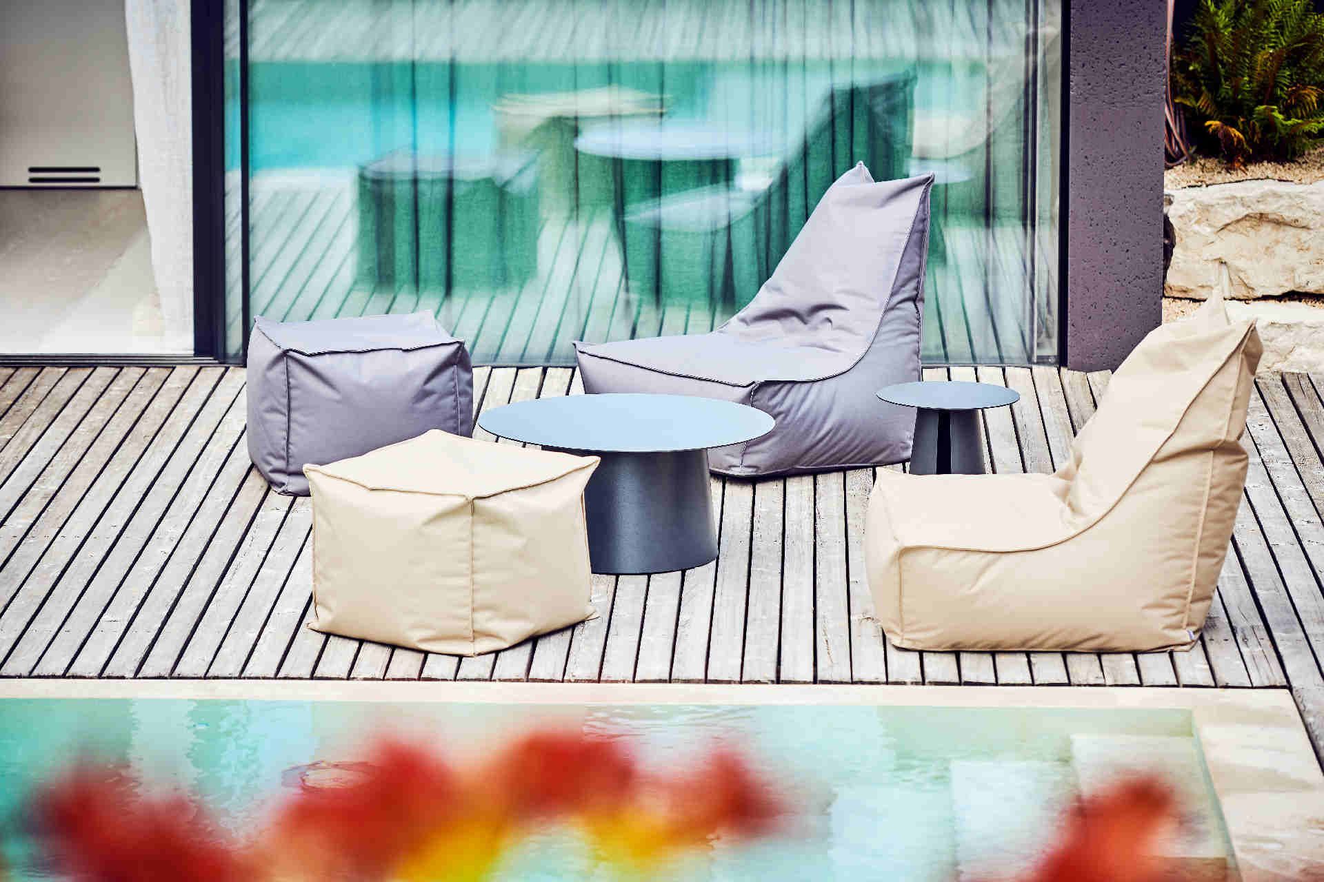 Sitzsack Gordon / Pouf Gwen, beschichteter Polyester, modern, anthrazit, outdoor