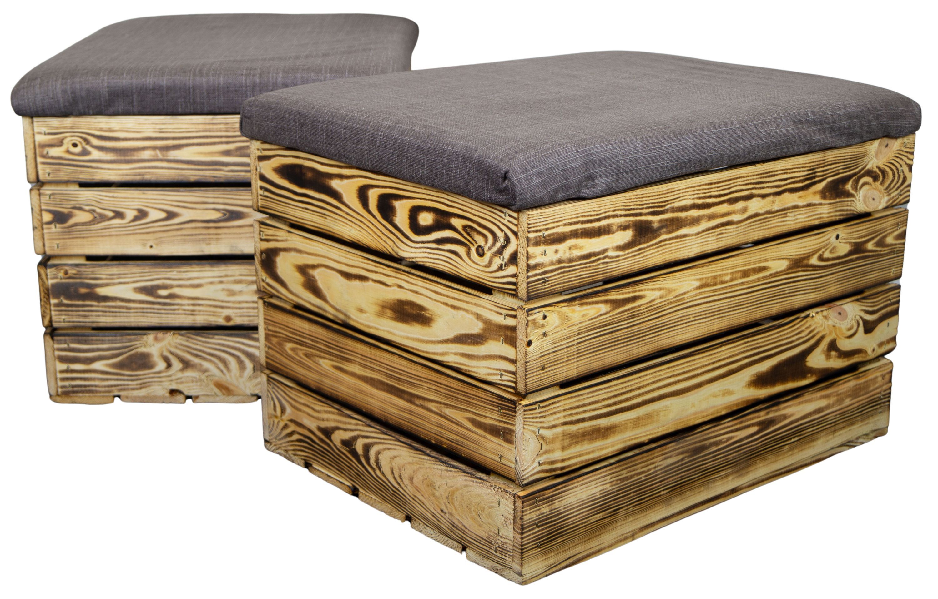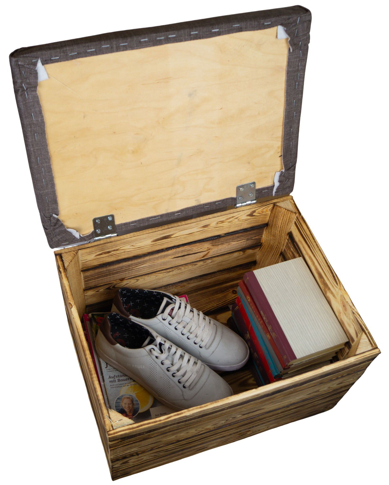 Sitztruhe Mira mit Stauraum in geflammt Maße 34x35x48 Sitzhocker Obstkiste Holzkis