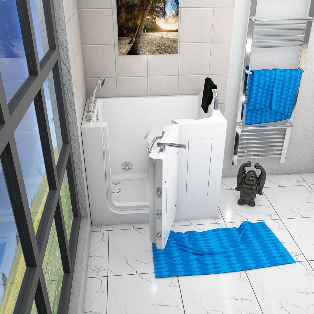 Sitzwanne Whirlpool Badewanne mit Tür S08WP-TH-A-R 68x110cm
