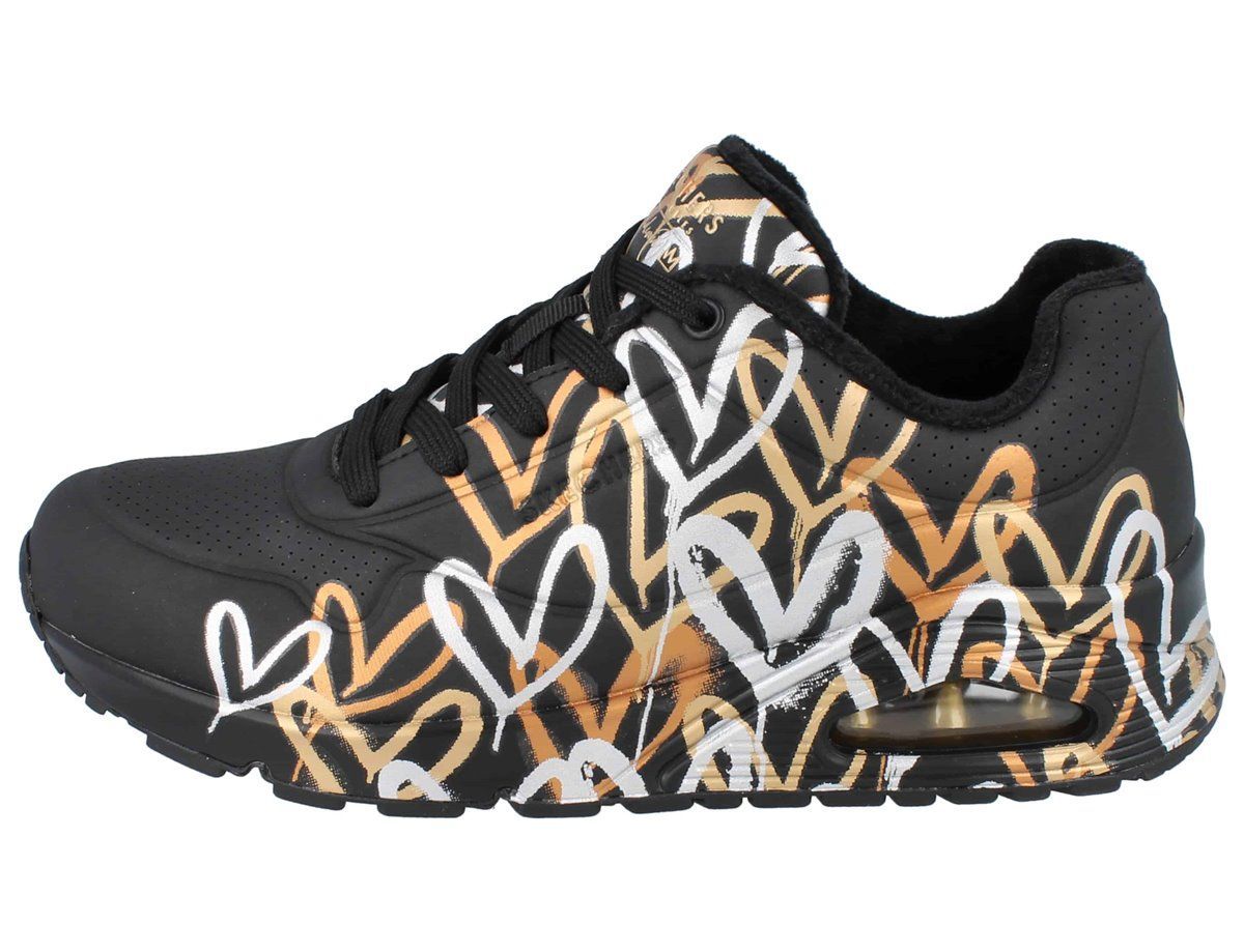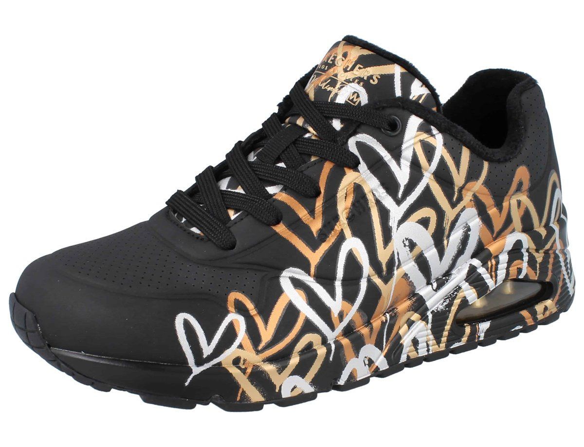 Skechers Skechers Uno Metallic Love Damen Sneaker Schnürschuhe schwarz Herzprint Kunstleder