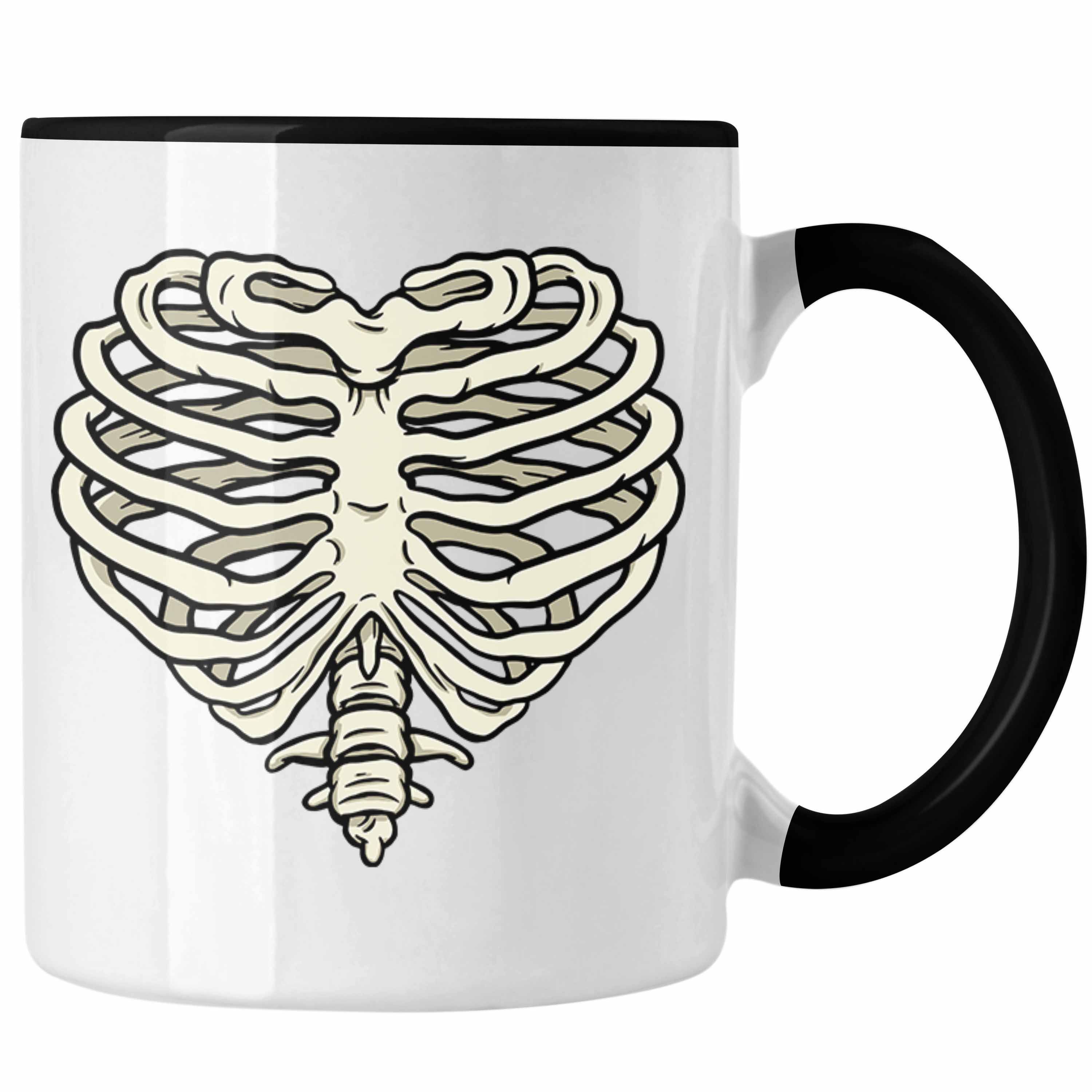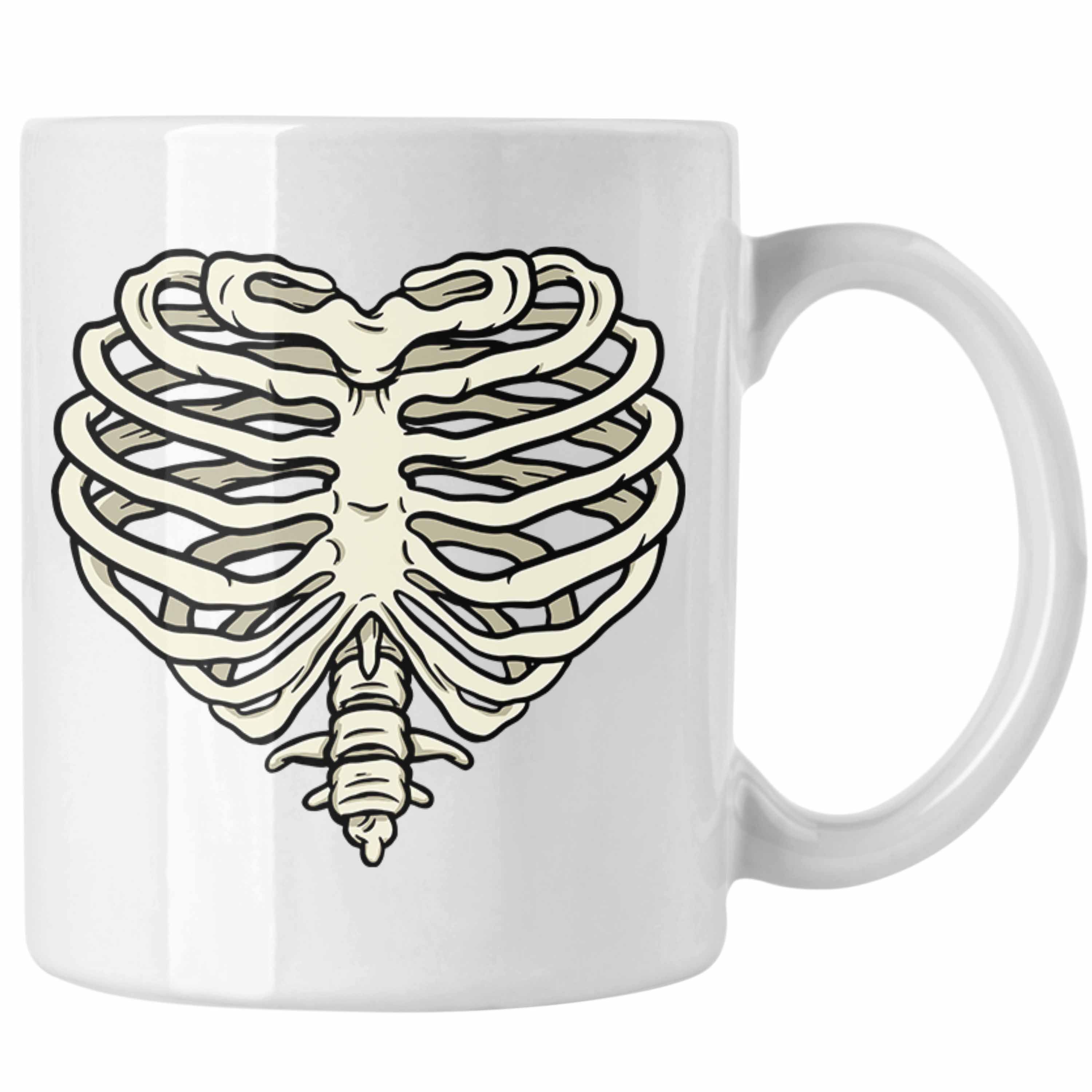 Skelet Tasse Herz Geschenk Totenkopf Valentinstag Kaffeetasse mit Herz aus Skelett