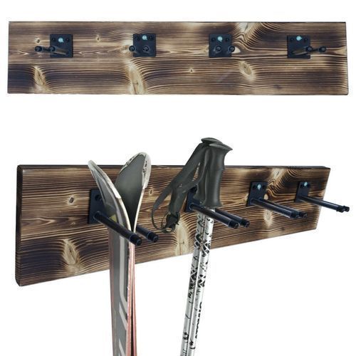 QLS Skihalterung N1 Wand Skihalter Holz Hakenleiste für 4 Paare Nordic Walking 9982