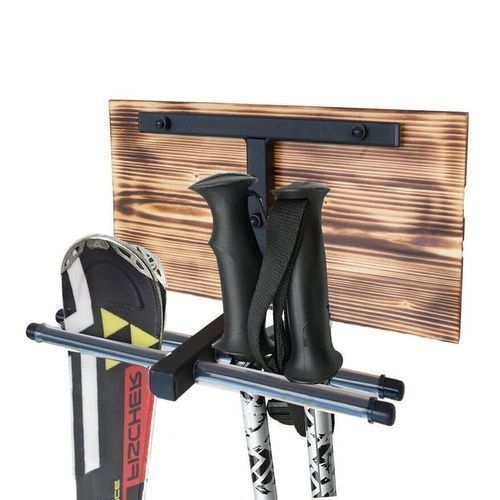 QLS Skihalterung Wand Skihalter für 2 Paare Stahl Holz Schi Hakenleiste 30 cm N4.2 9975