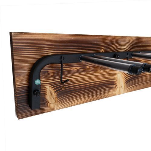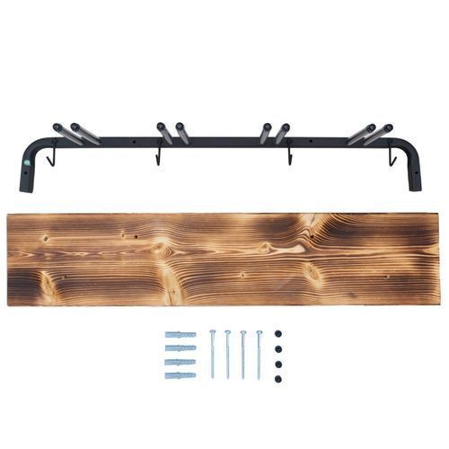 QLS Skihalterung Wand Skihalter für 4 Paare Stahl Holz Hakenleiste Wandmontage N3 9973