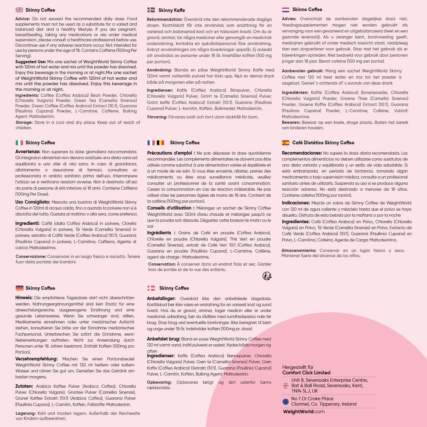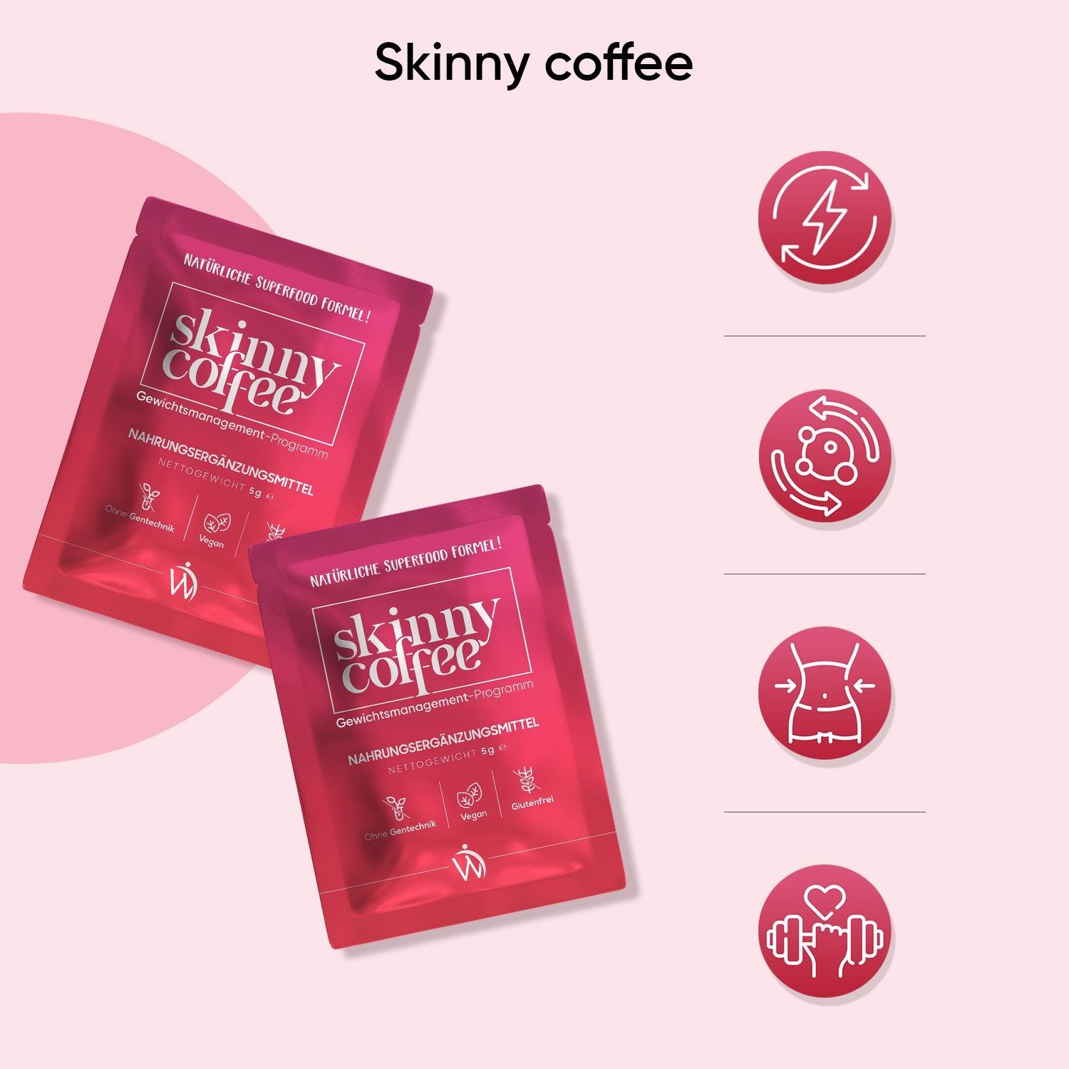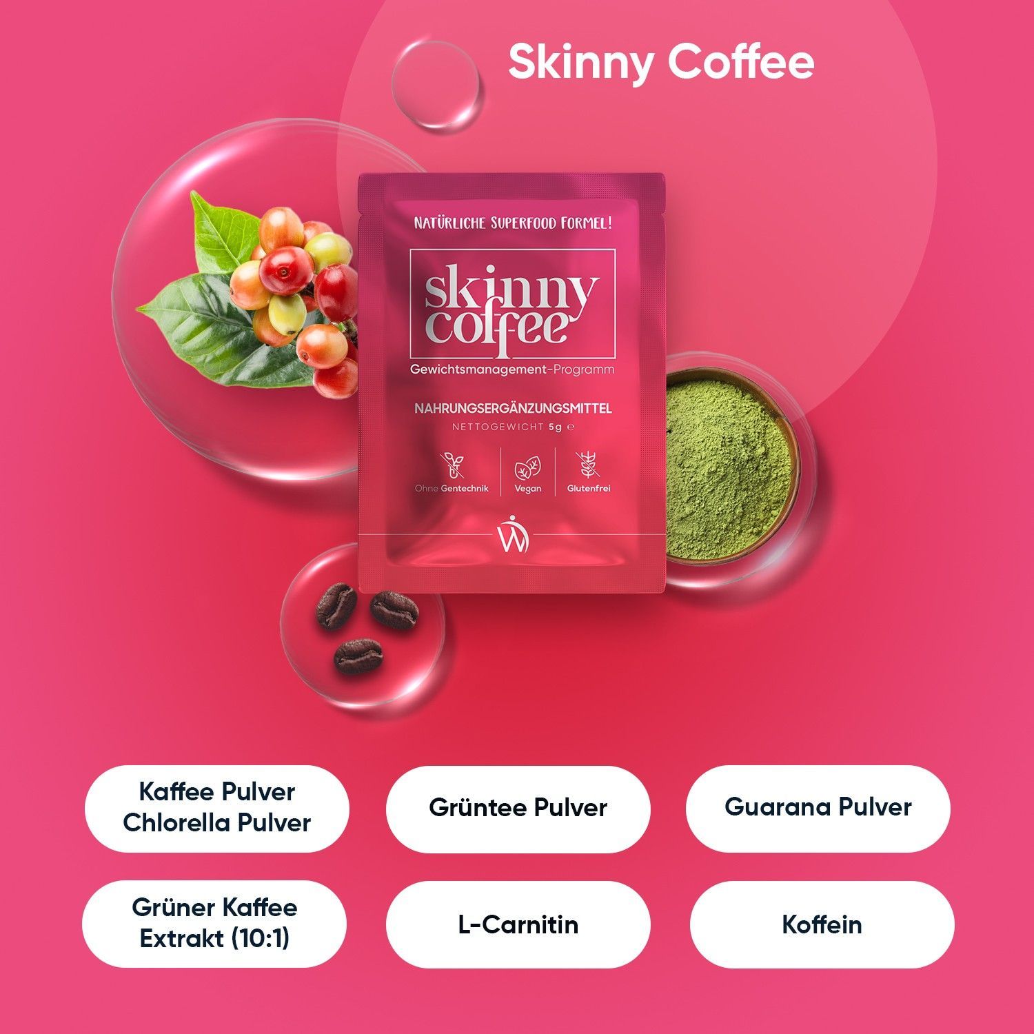 Skinny Coffee - Arabica Kaffee mit Chlorella, Grüner Tee - 28 Teebeutel - 2 Flaschen