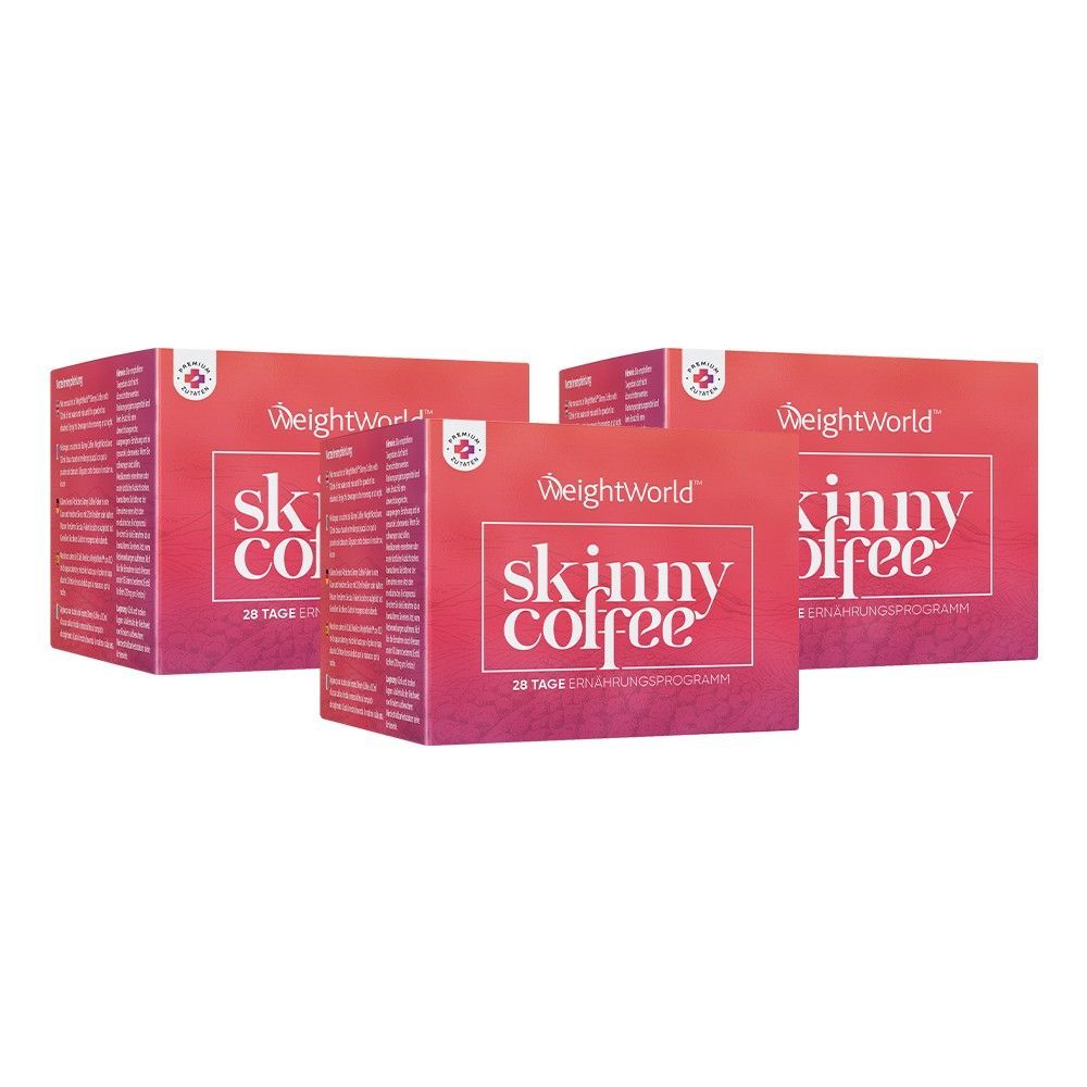 Skinny Coffee - Arabica Kaffee mit Chlorella, Grüner Tee - 28 Teebeutel - 3 Flaschen