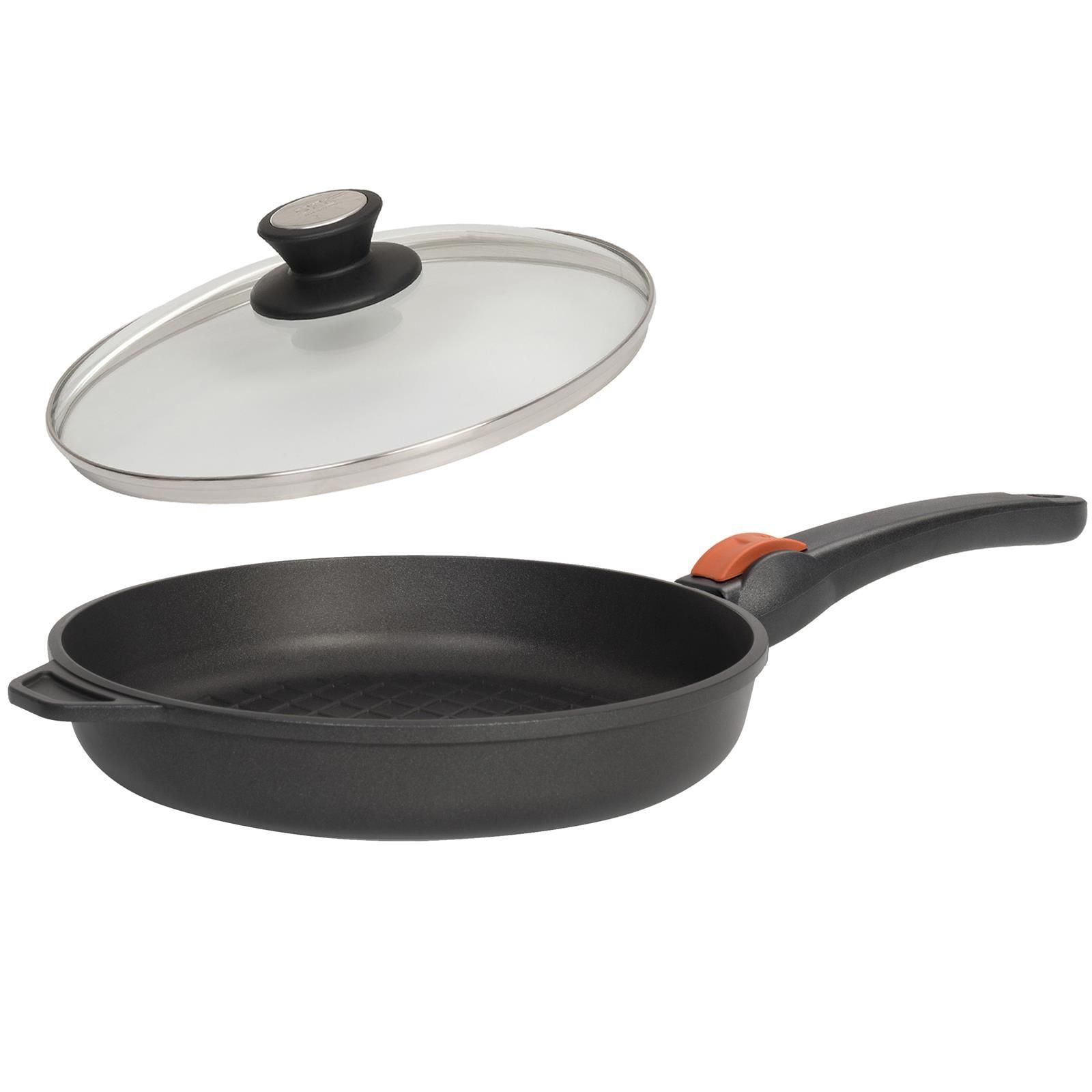 SKK Aluguss BBQ Grillpfanne 28 cm Induktion Antihaft Griff abnehmbar mit Deckel