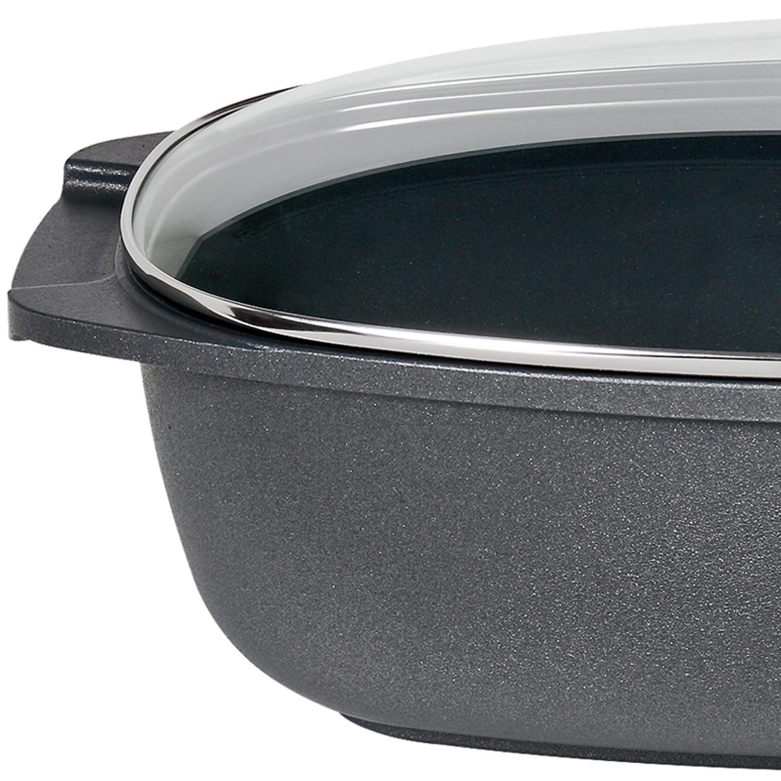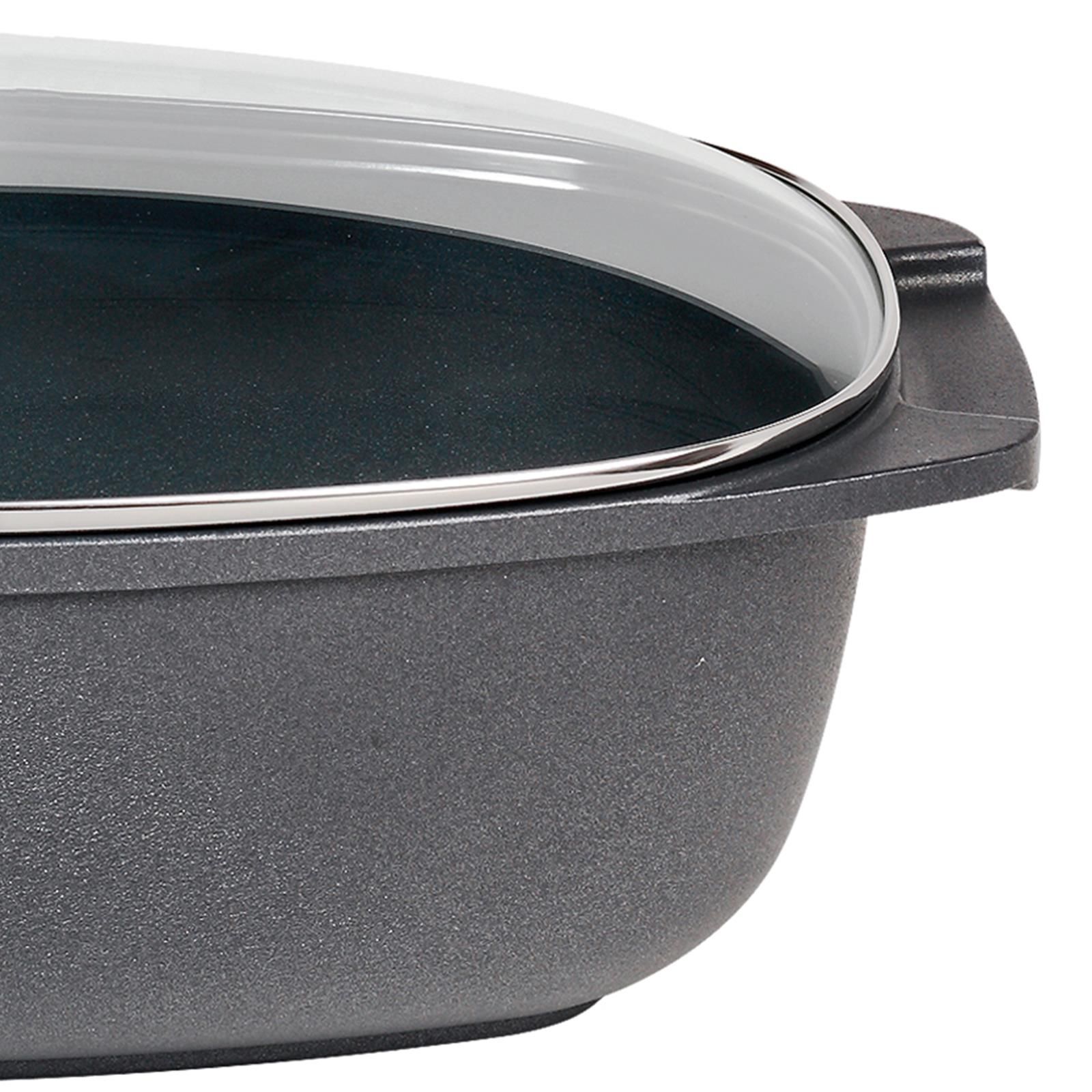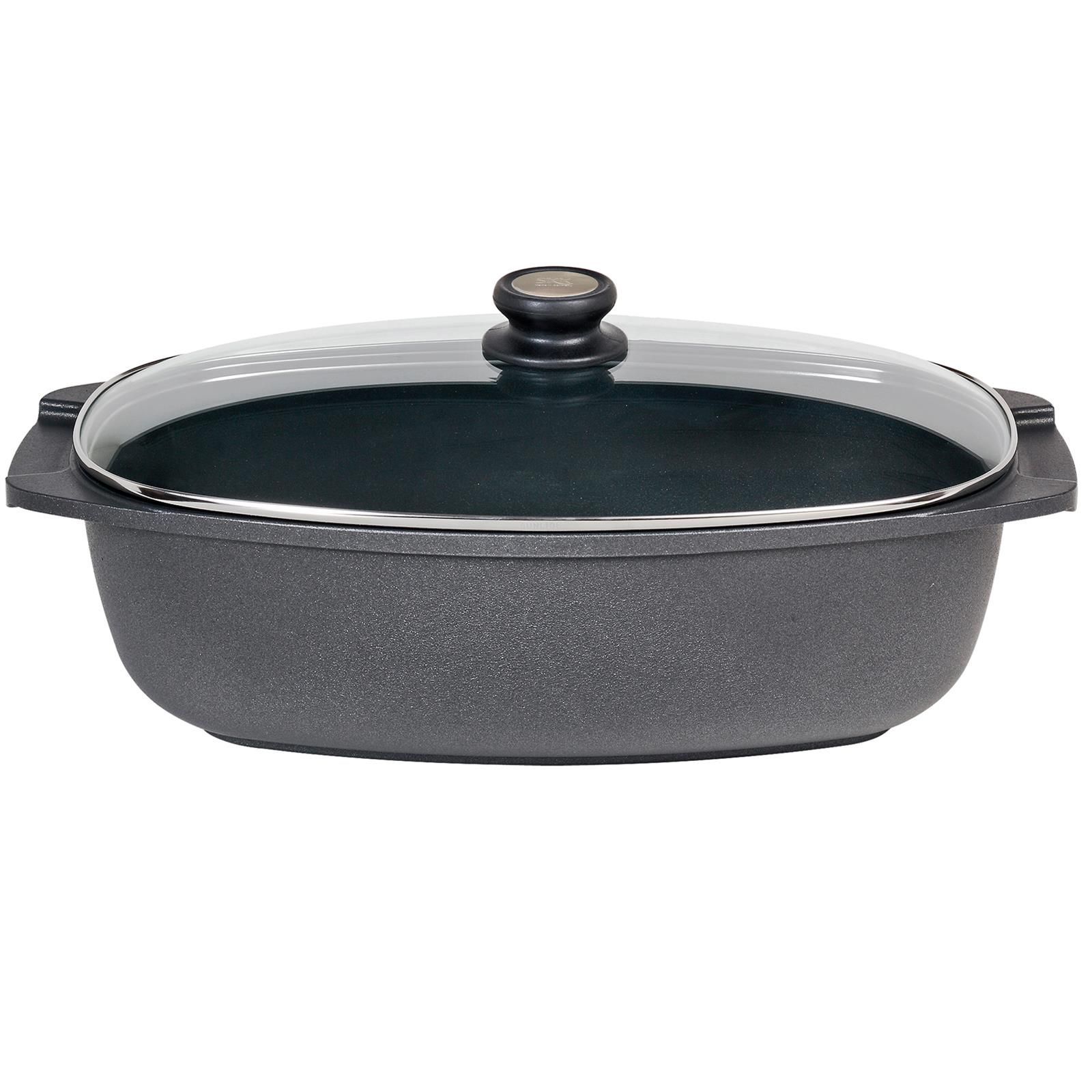 SKK Aluguss Bräter 40x24 cm Induktion eckig Brattopf beschichtet mit Glasdeckel