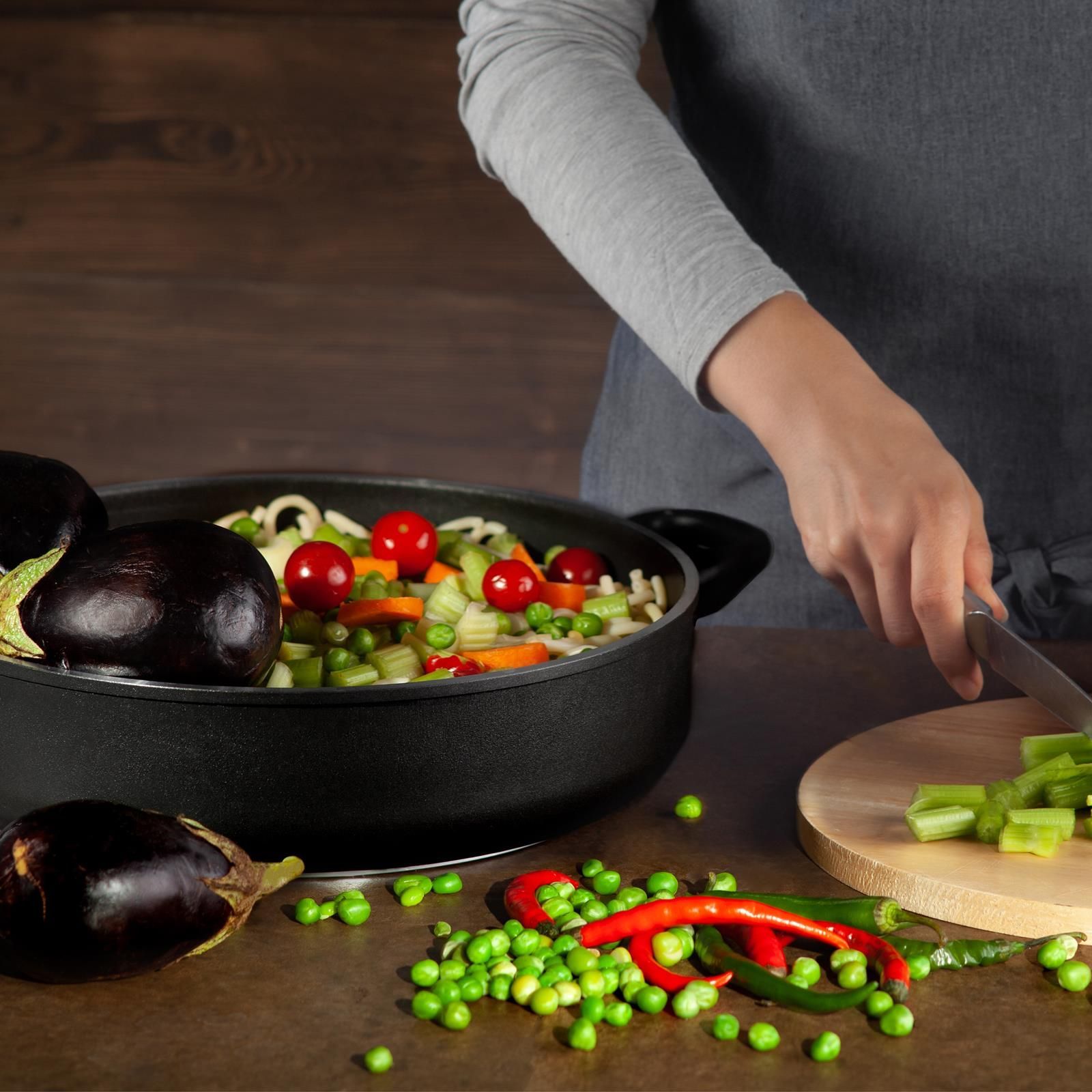 SKK Brat-Kasserolle Ø 26 cm beschichtet Induktion Antihaft Schmortopf mit Deckel