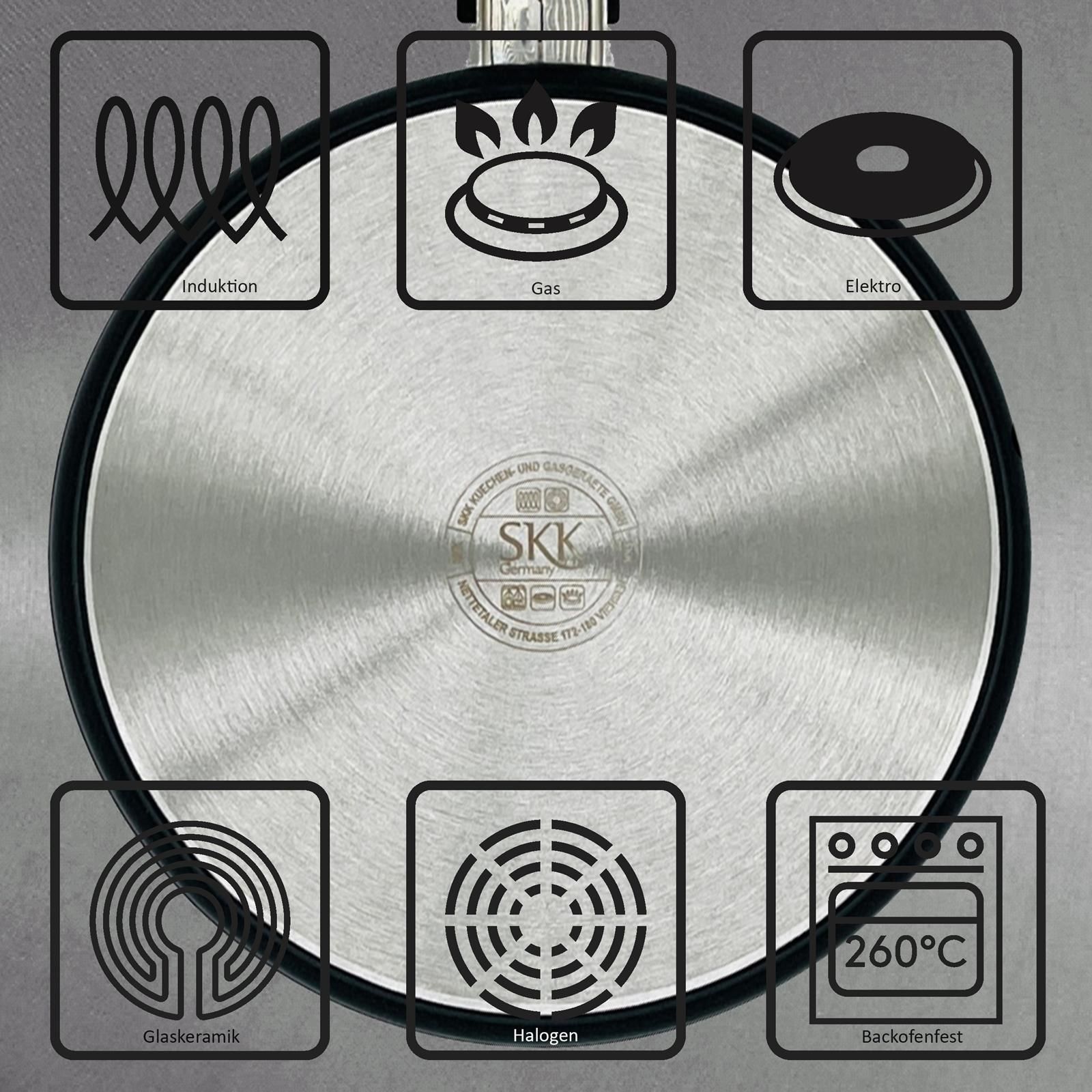 SKK Bratpfanne Ø 24 cm Aluguss Induktion Antihaft Flachrand-Pfanne & Glasdeckel