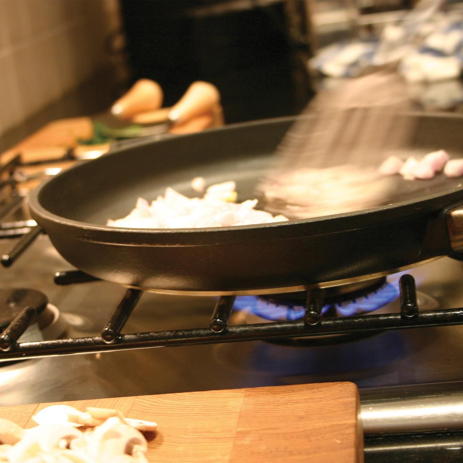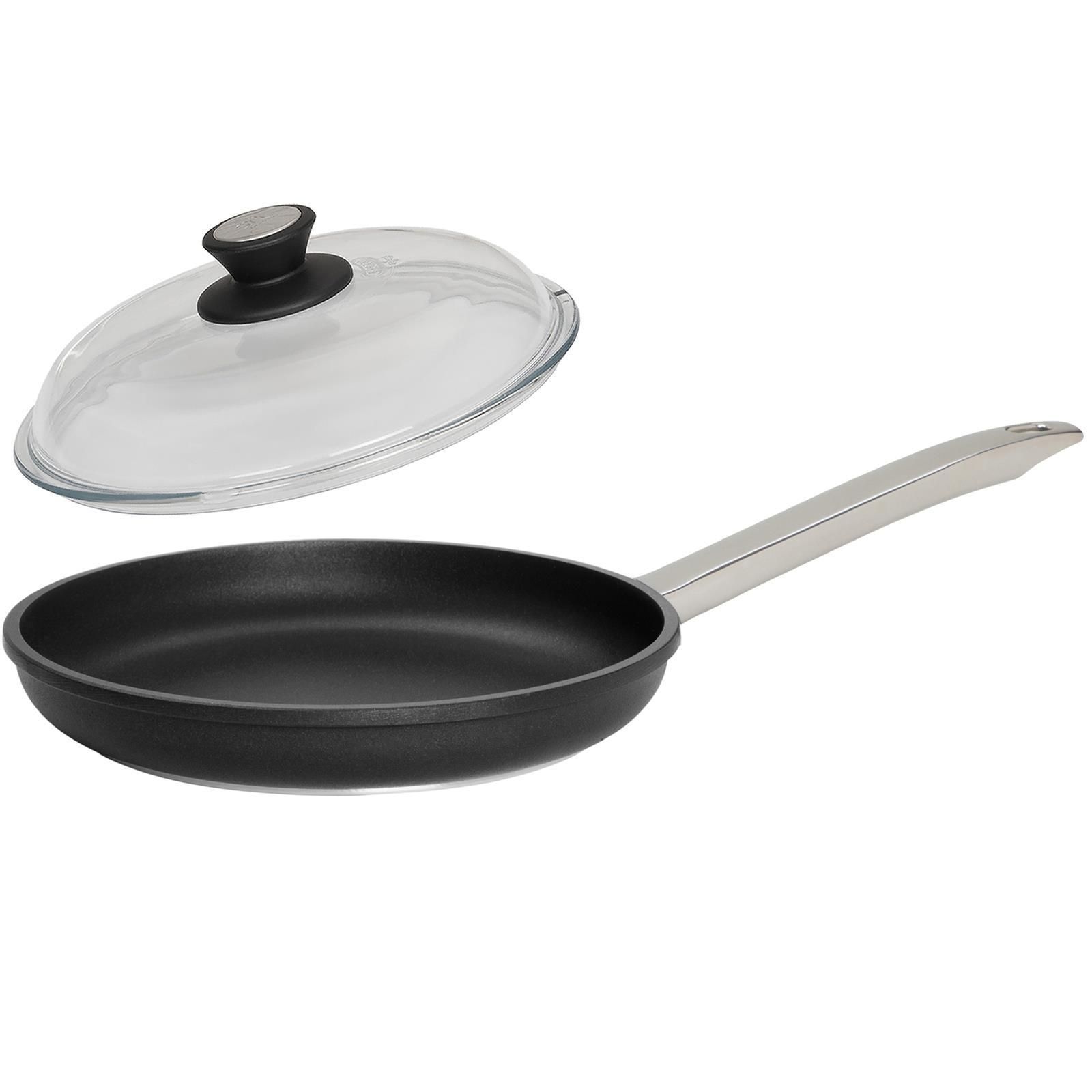 SKK Bratpfanne Ø 24 cm Pfanne flacher Rand Antihaft Edelstahlgriff & Glasdeckel