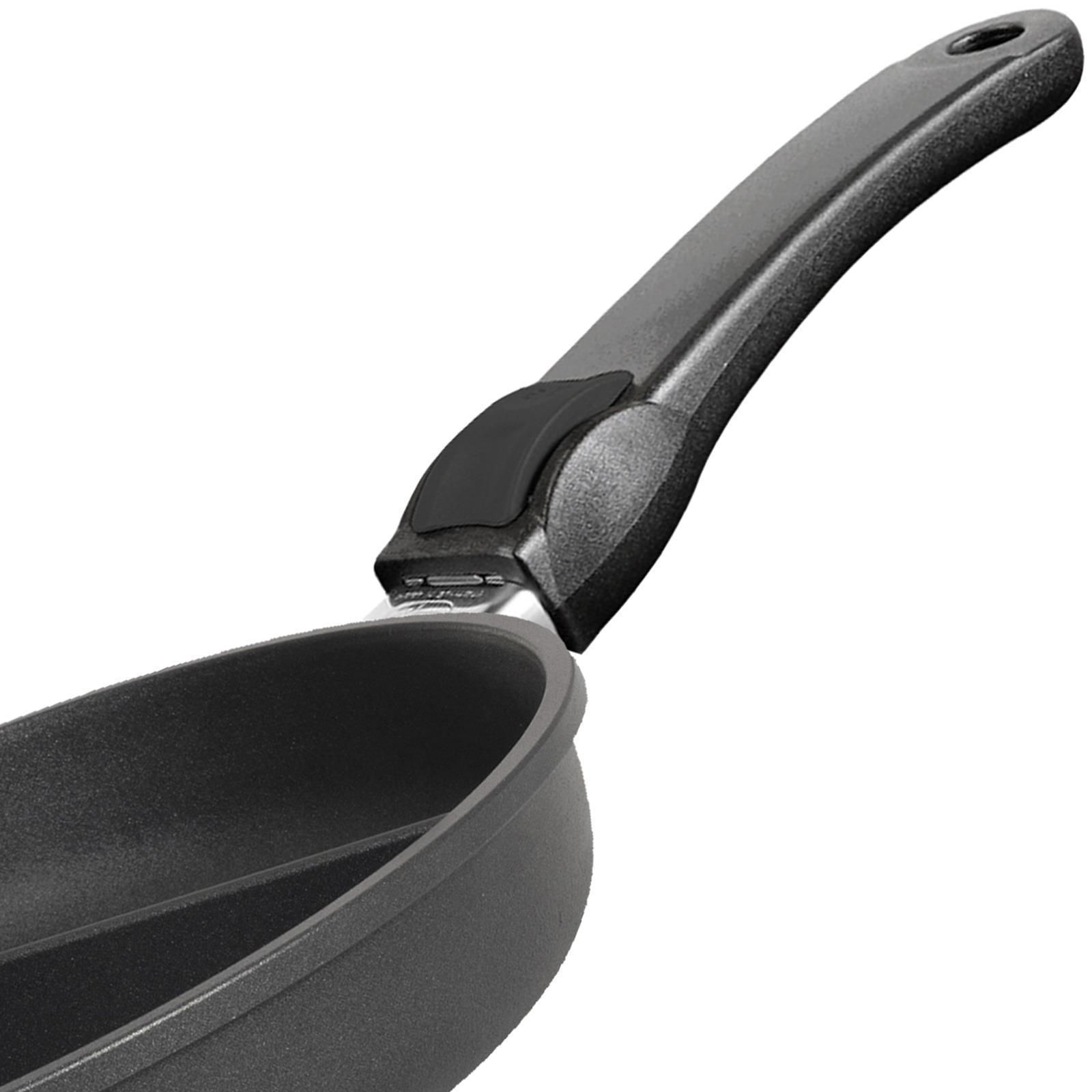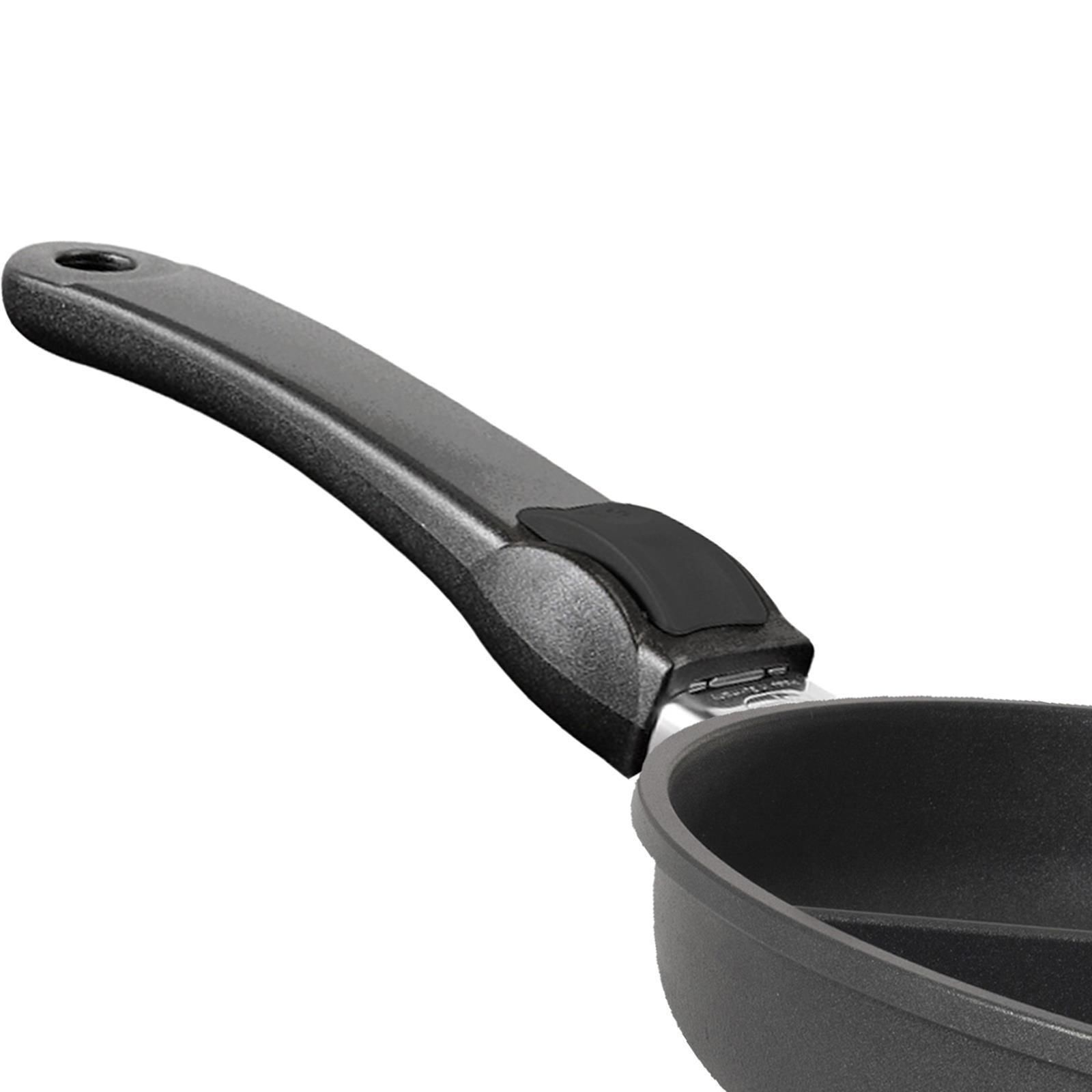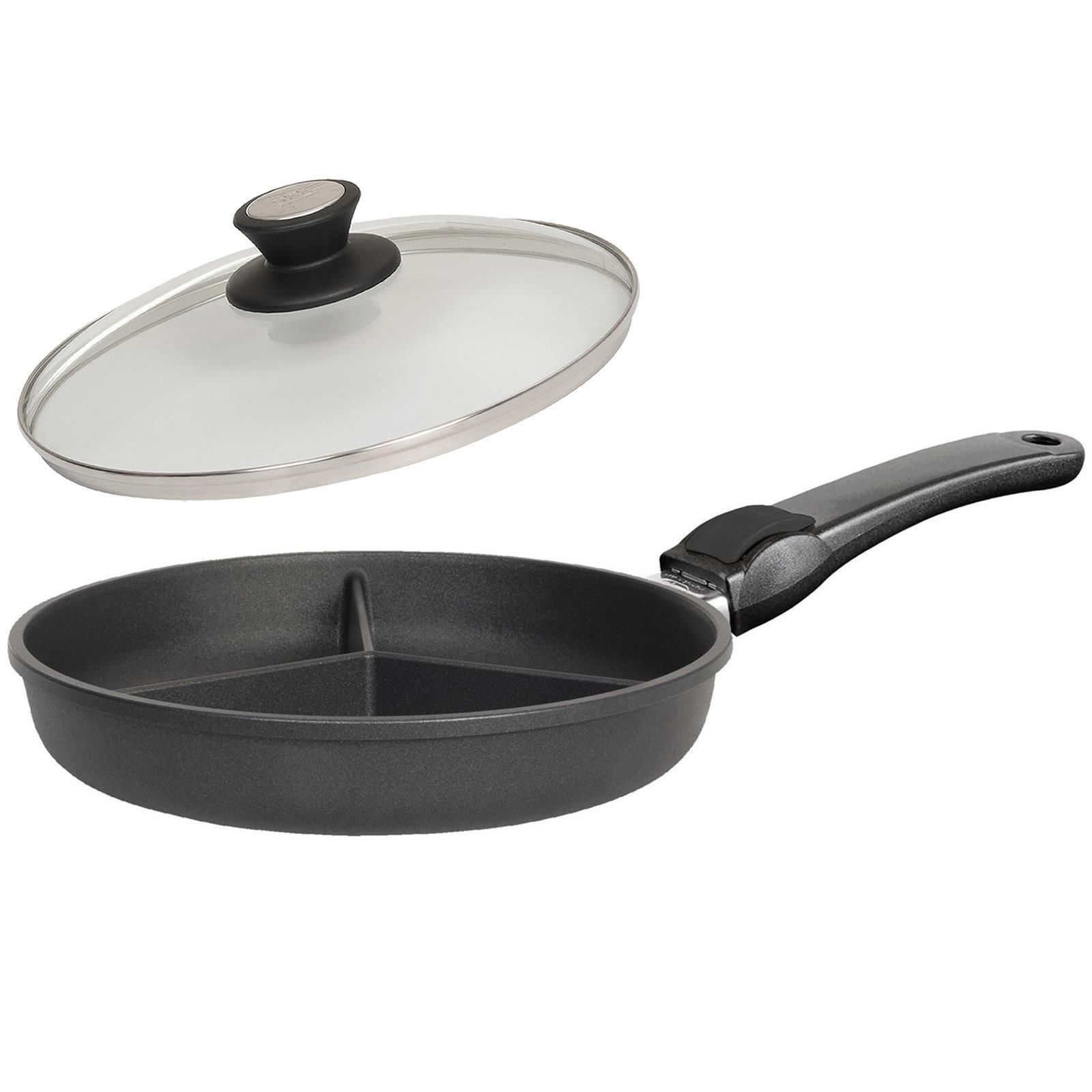 SKK Bratpfanne Ø 28 cm Guss 3er Steg Pfanne beschichtet Griff abnehmbar & Deckel