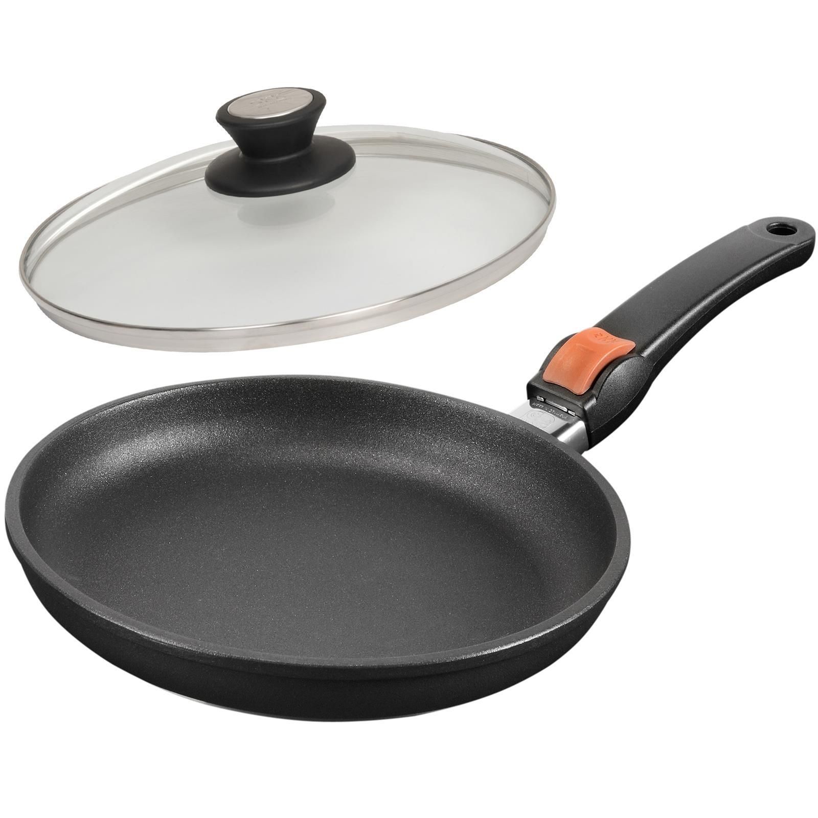 SKK Bratpfanne 28 cm Induktion Antihaft Pfanne Griff abnehmbar & Deckel aus Glas