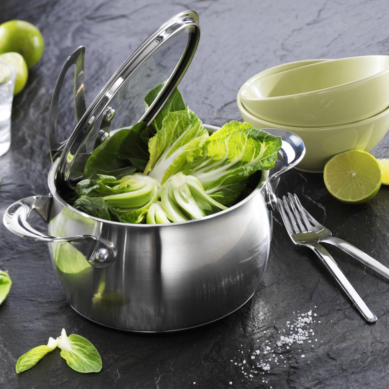 SKK Edelstahl Kochtopf Ø 18 cm Induktion Suppentopf Universaltopf mit Glasdeckel