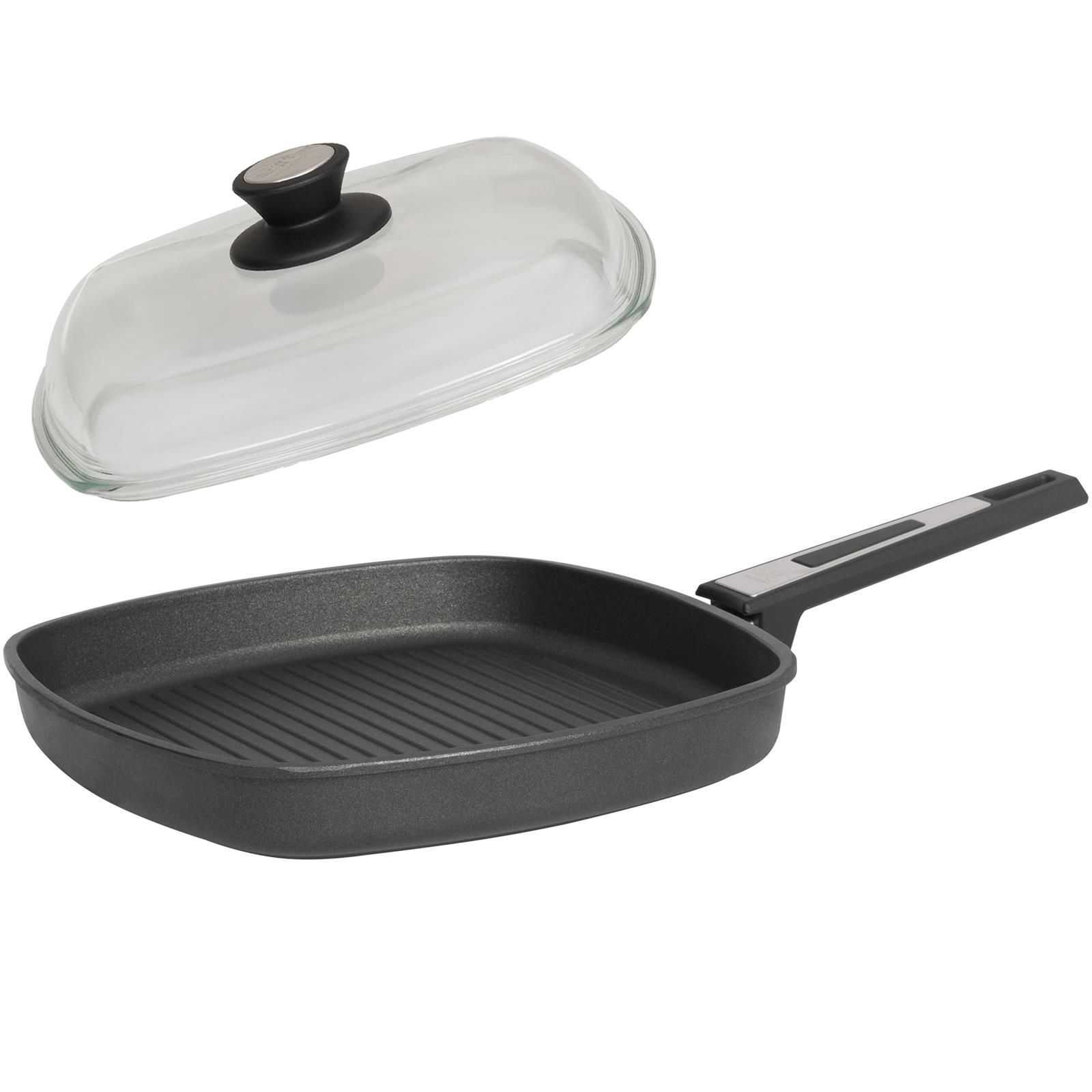 SKK flache Guss Eck-Grill-Pfanne 26 cm Induktion Antihaft Steakpfanne Glasdeckel