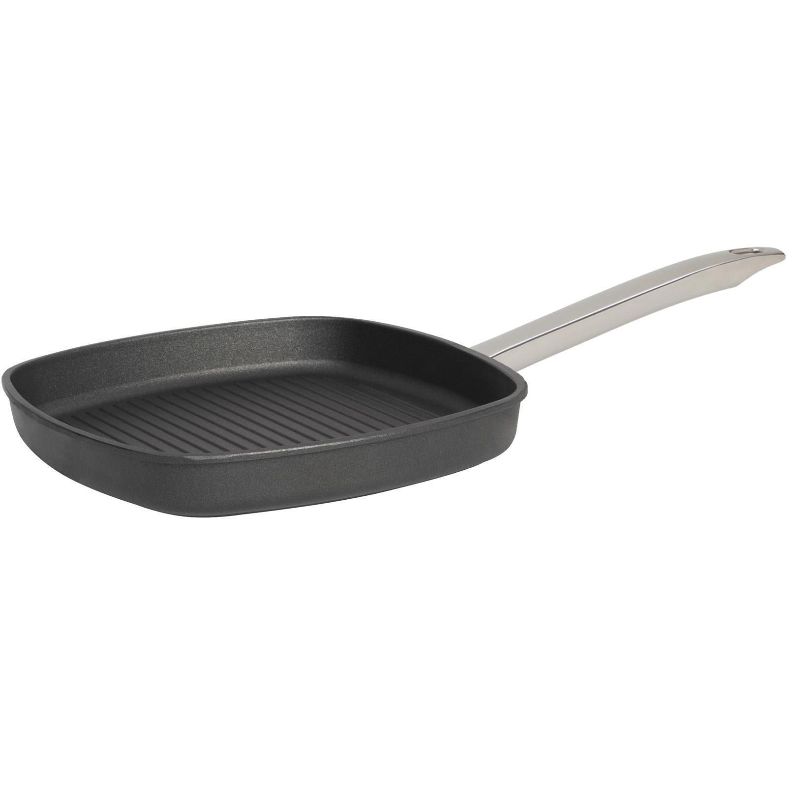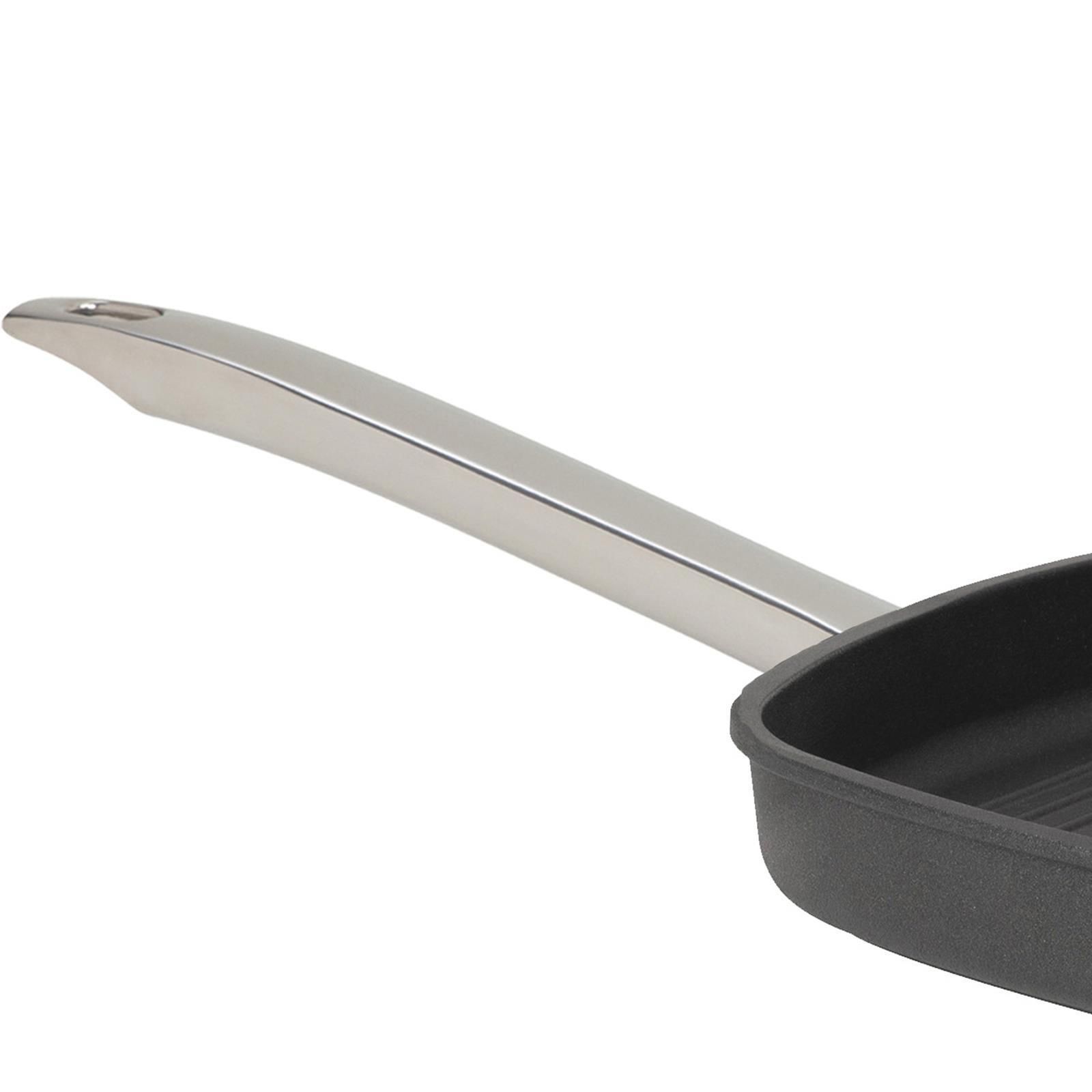 SKK Grill-Pfanne 28 cm flacher Rand eckig Aluguss beschichtet & Edelstahl-Griff