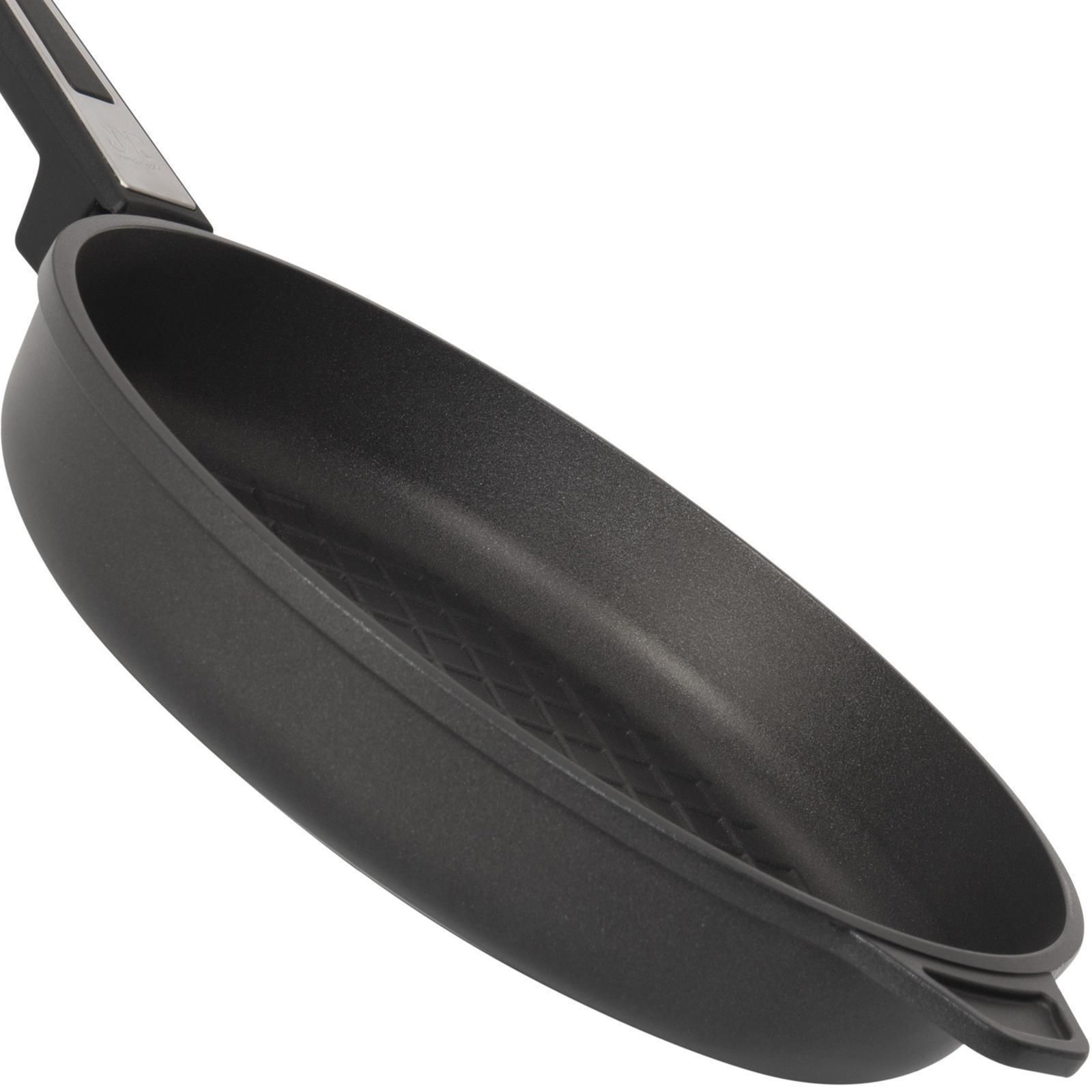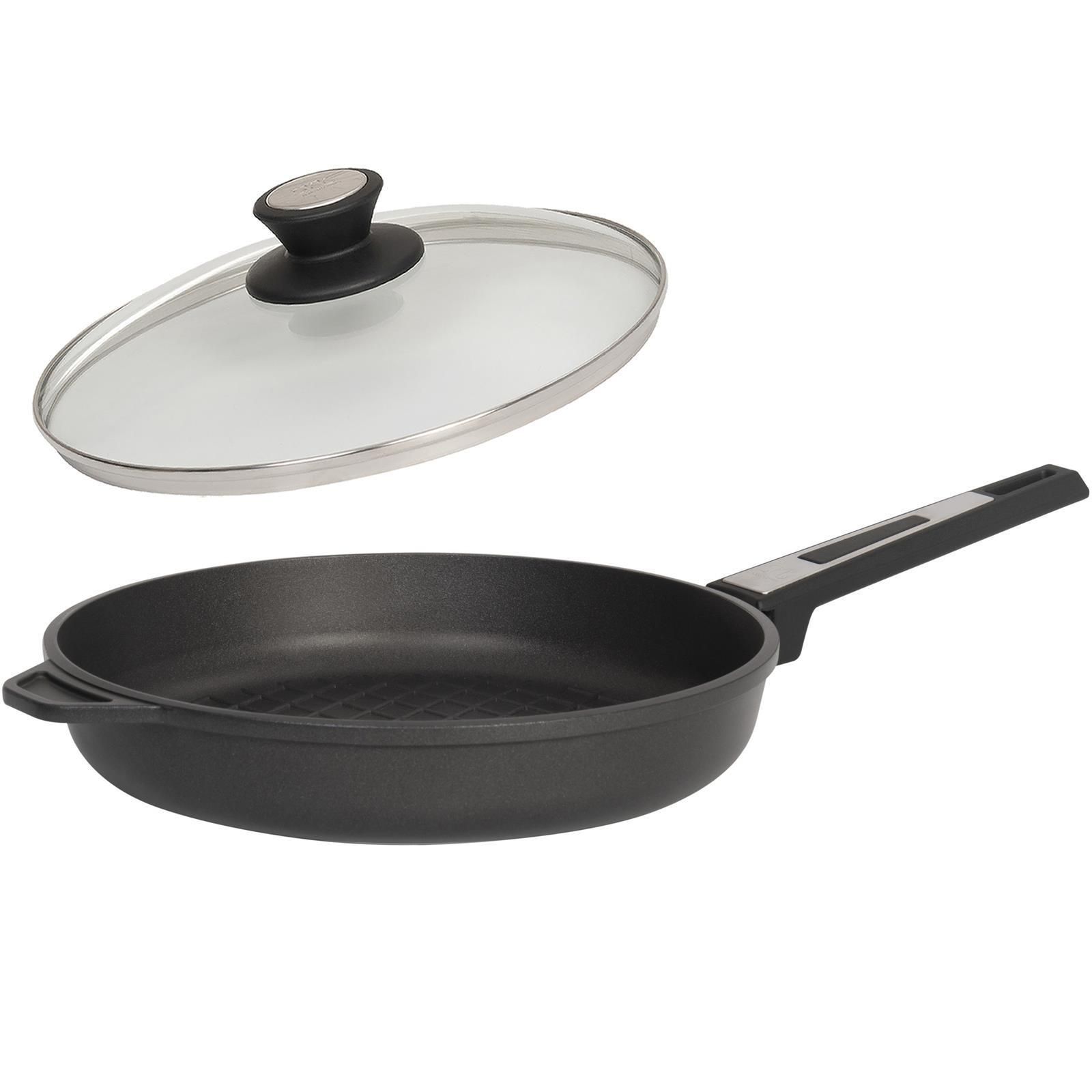 SKK Grill-Pfanne Ø 28 cm gerippte Guss Bratpfanne Antihaft Pfanne mit Glasdeckel