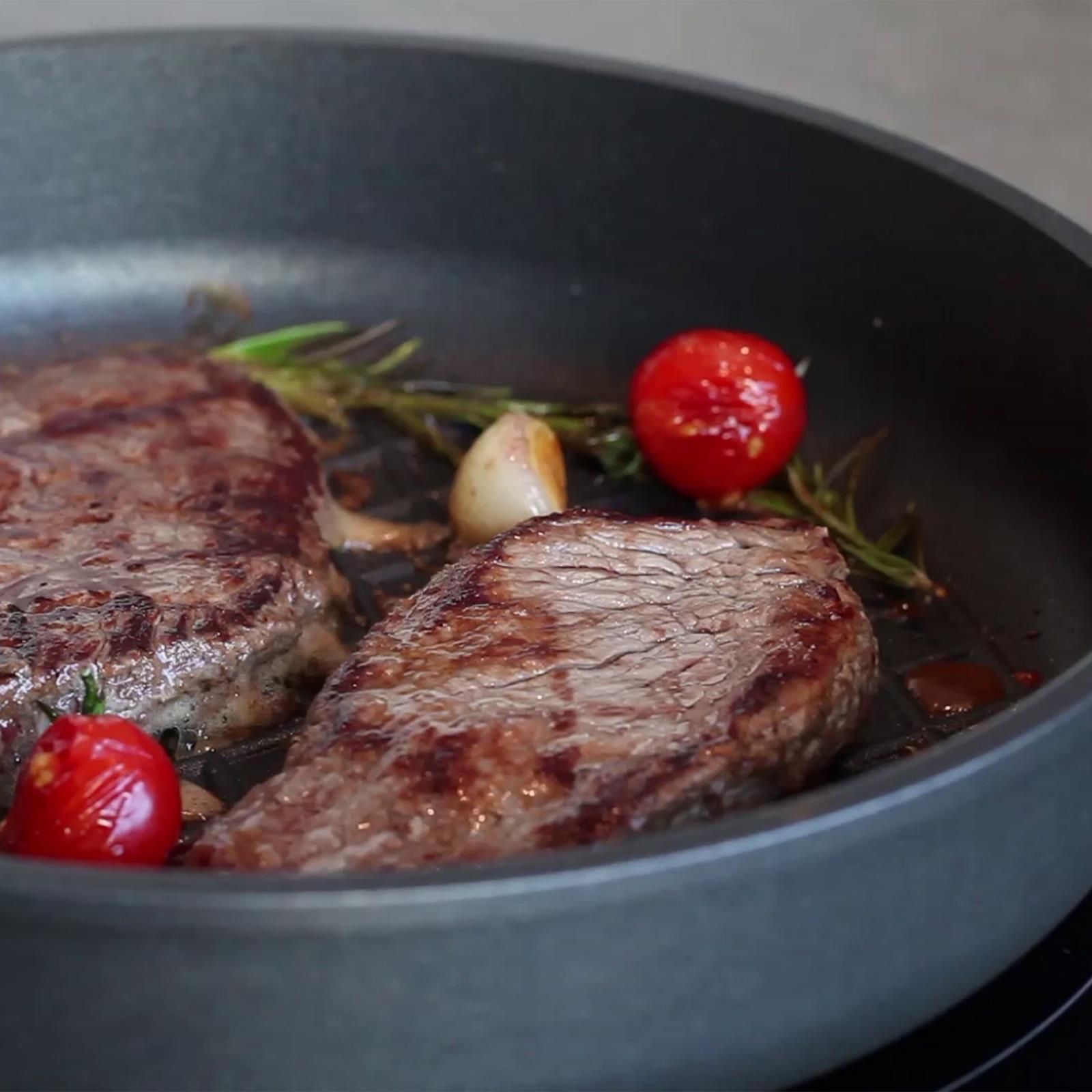 SKK Grill-Pfanne 28 cm Induktion Bratpfanne gerippt Guss Antihaft Edelstahlgriff
