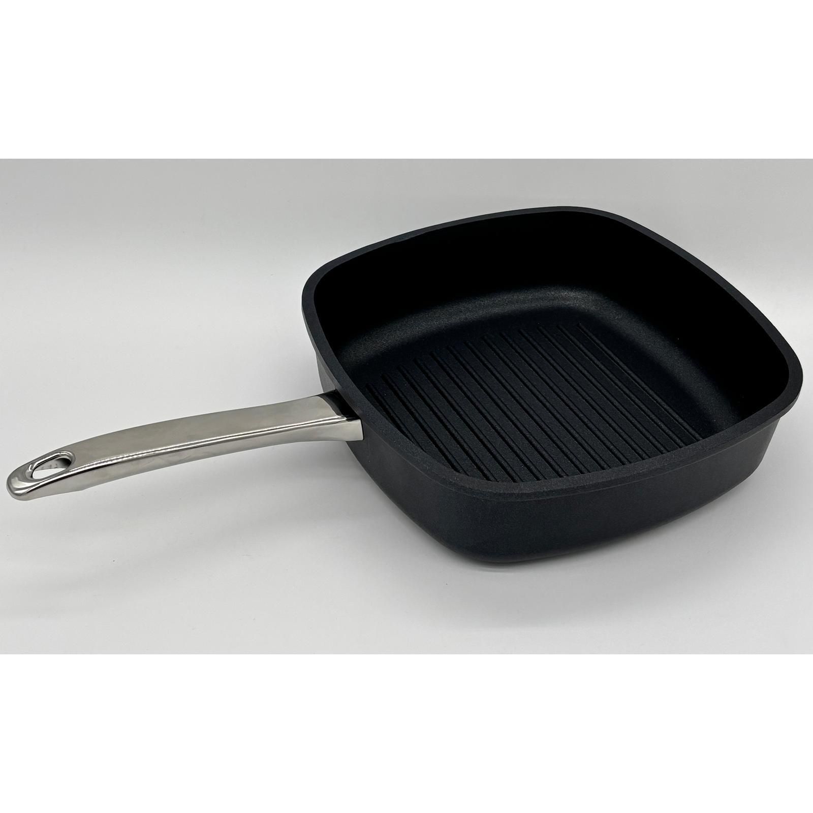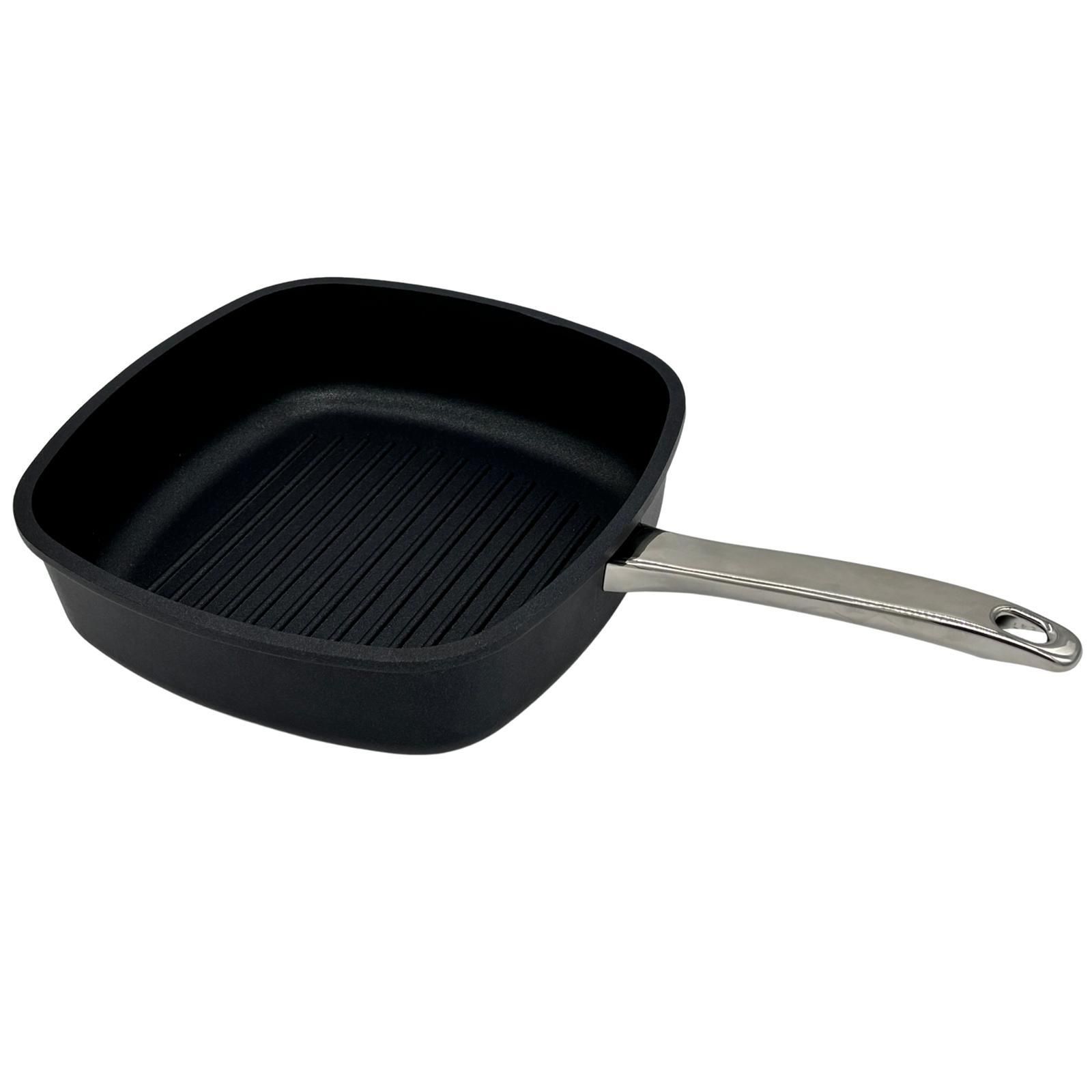 SKK Grillpfanne 26x26 cm eckig Hochrandpfanne Aluguss Antihaft & Edelstahlgriff