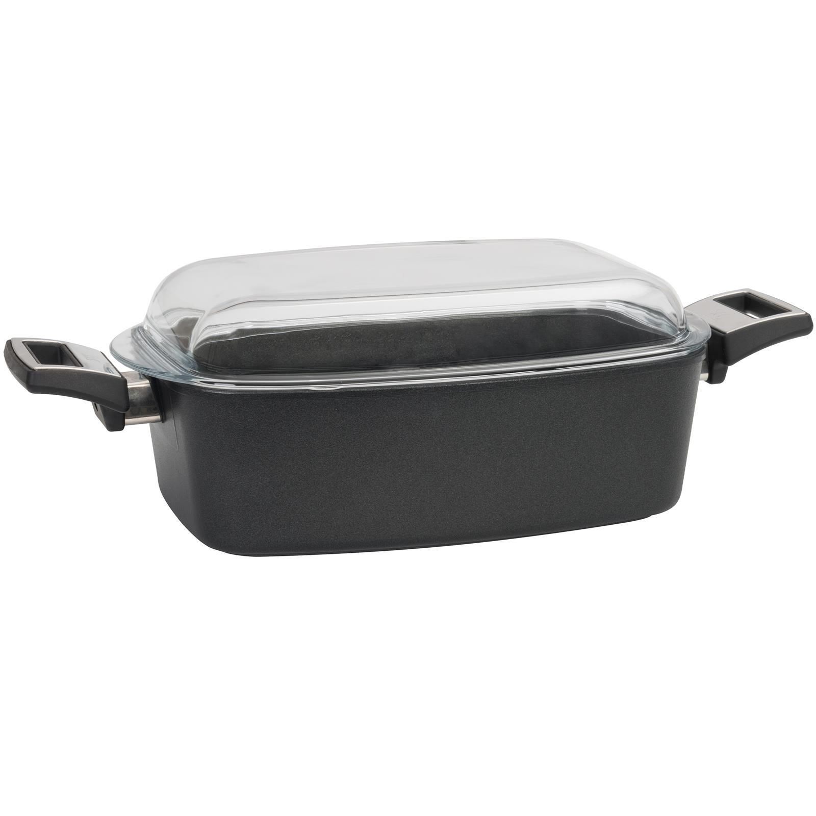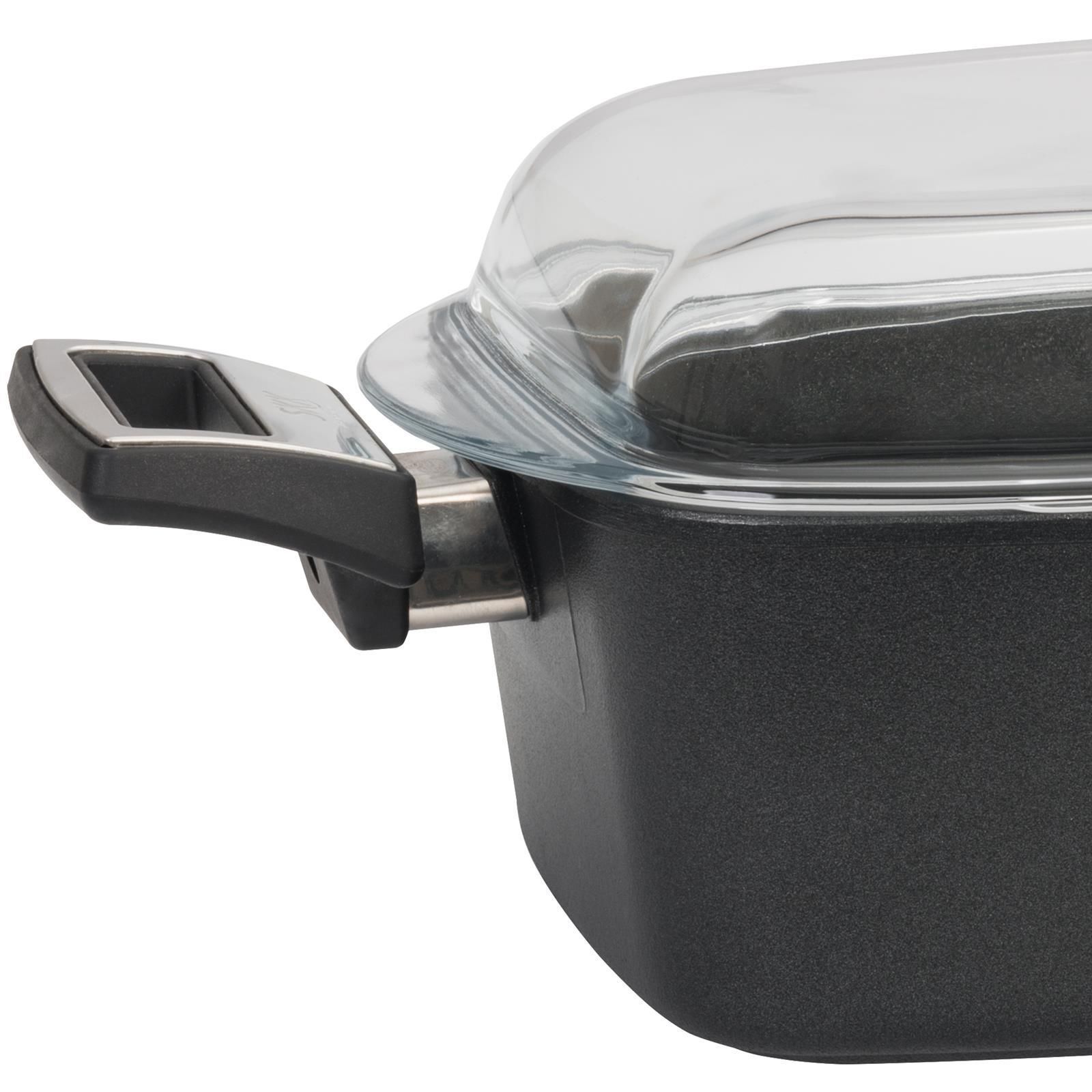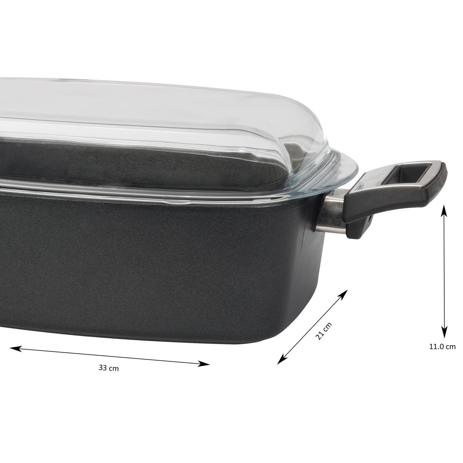 SKK Guss Bräter 33x21 cm Schmorbräter Aluguss Antihaft Glasdeckel & Seitengriffe