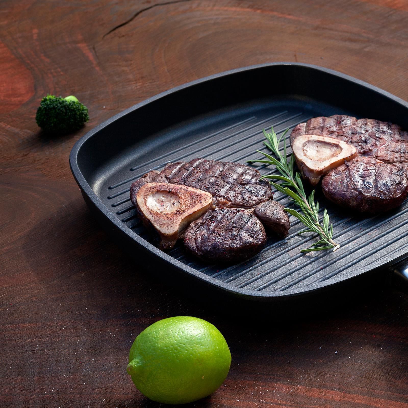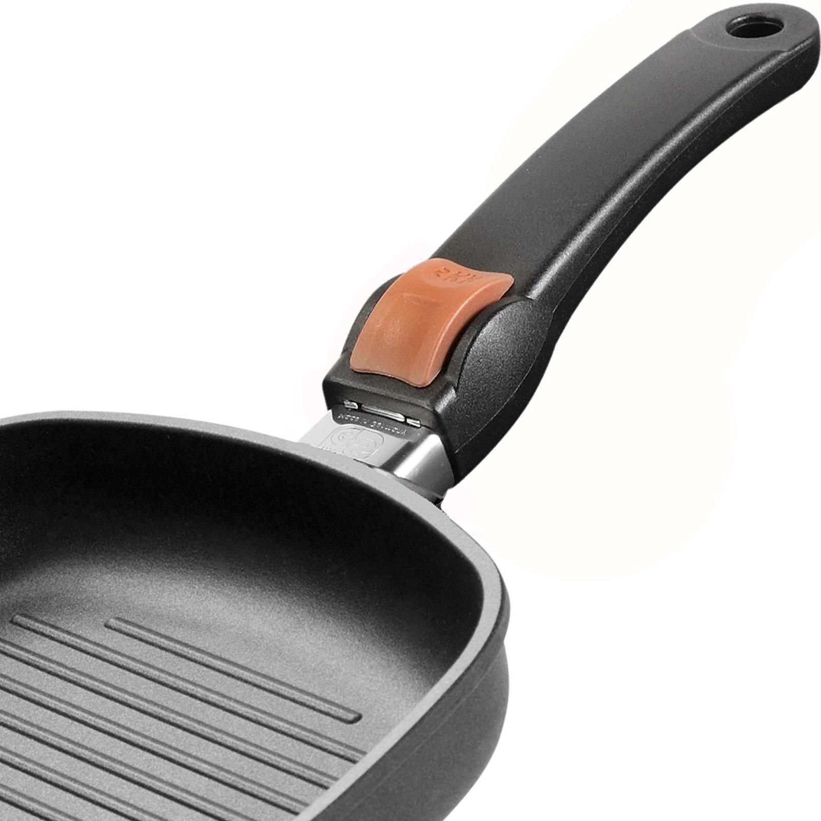 SKK Guss Eck-Grill-Pfanne 26x26 cm Induktion Antihaft Griff abnehmbar mit Deckel