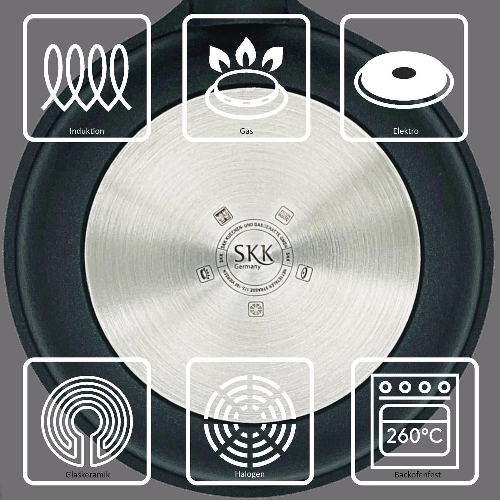 SKK Guss Kasserolle Ø 28 cm Induktion Antihaft beschichtet Bratentopf Glasdeckel