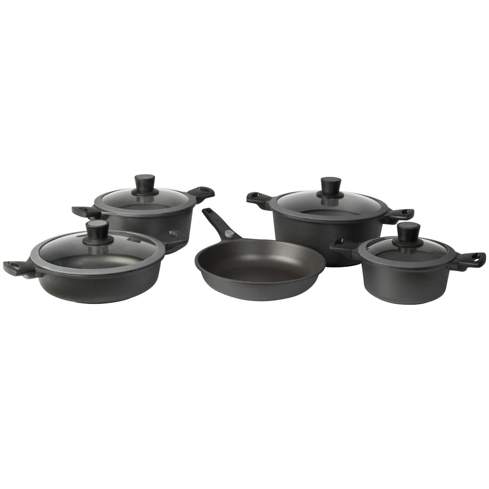 SKK Guss Kochtopf Set 9-tlg. Induktion Antihaft inkl. Bratpfanne und Glasdeckel