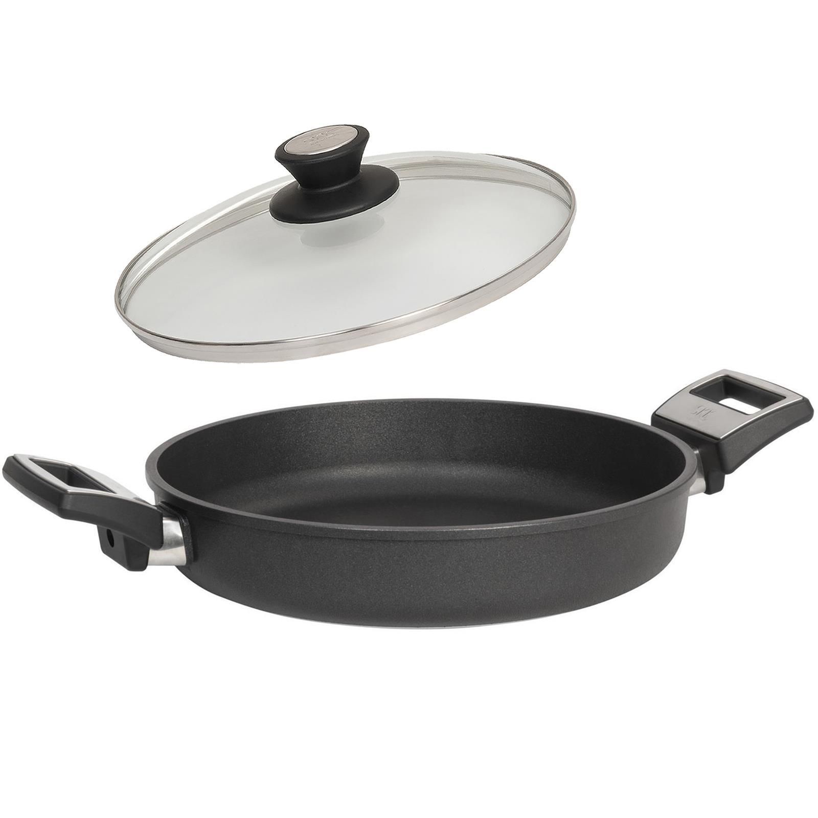 SKK Guss Paella-Pfanne 28 cm Antihaft Bratpfanne Schmorpfanne & Deckel aus Glas