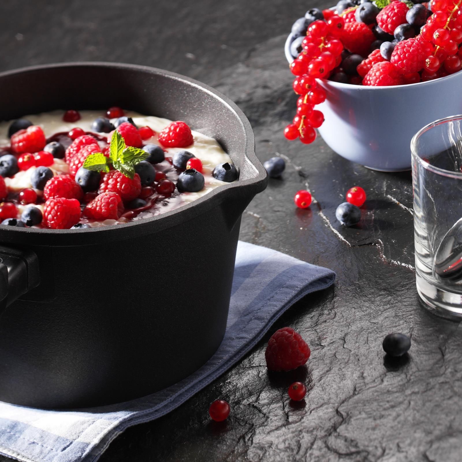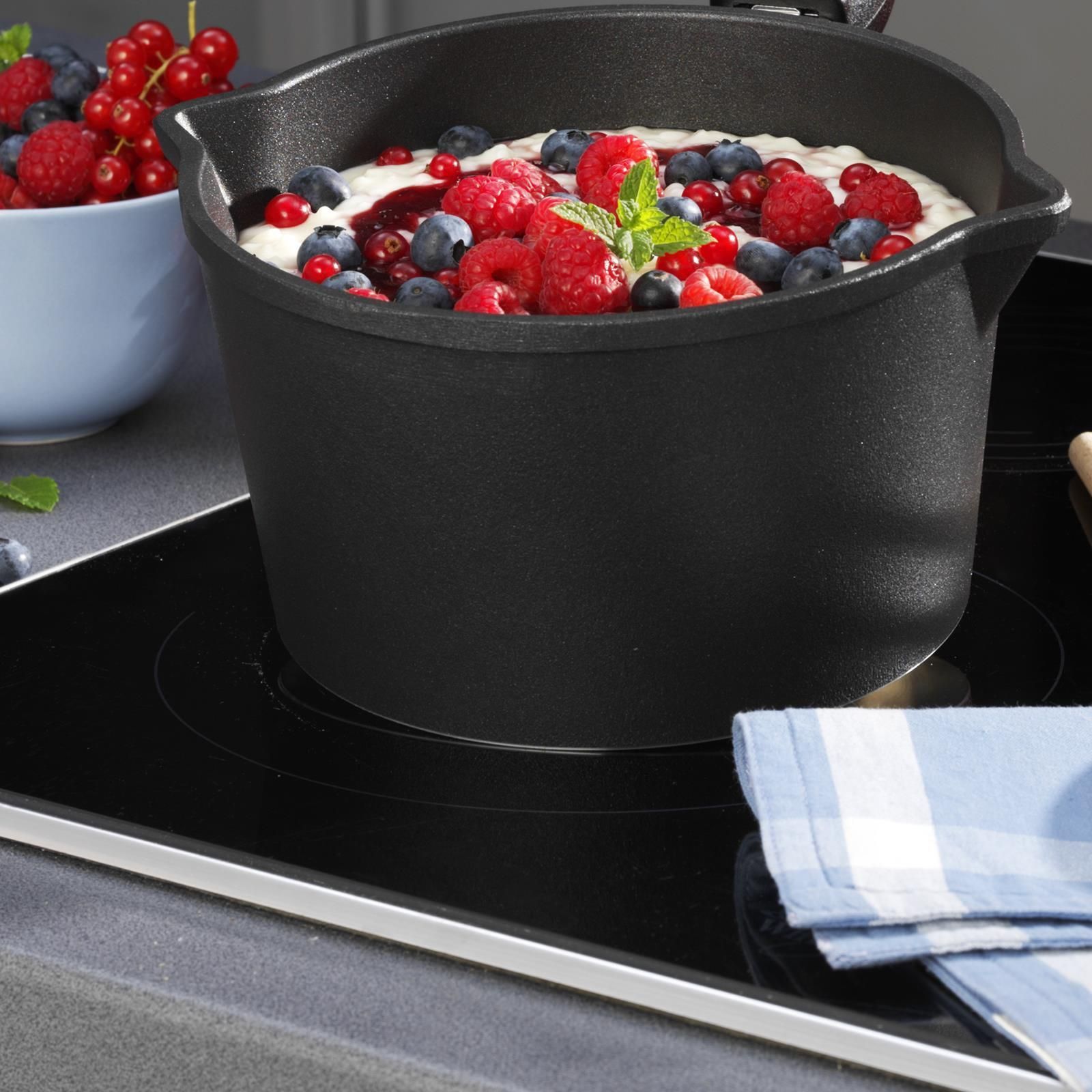 SKK Guss Stielkasserolle 18 cm Kochtopf Stieltopf Aluguss Antihaft & 2 Ausgießer