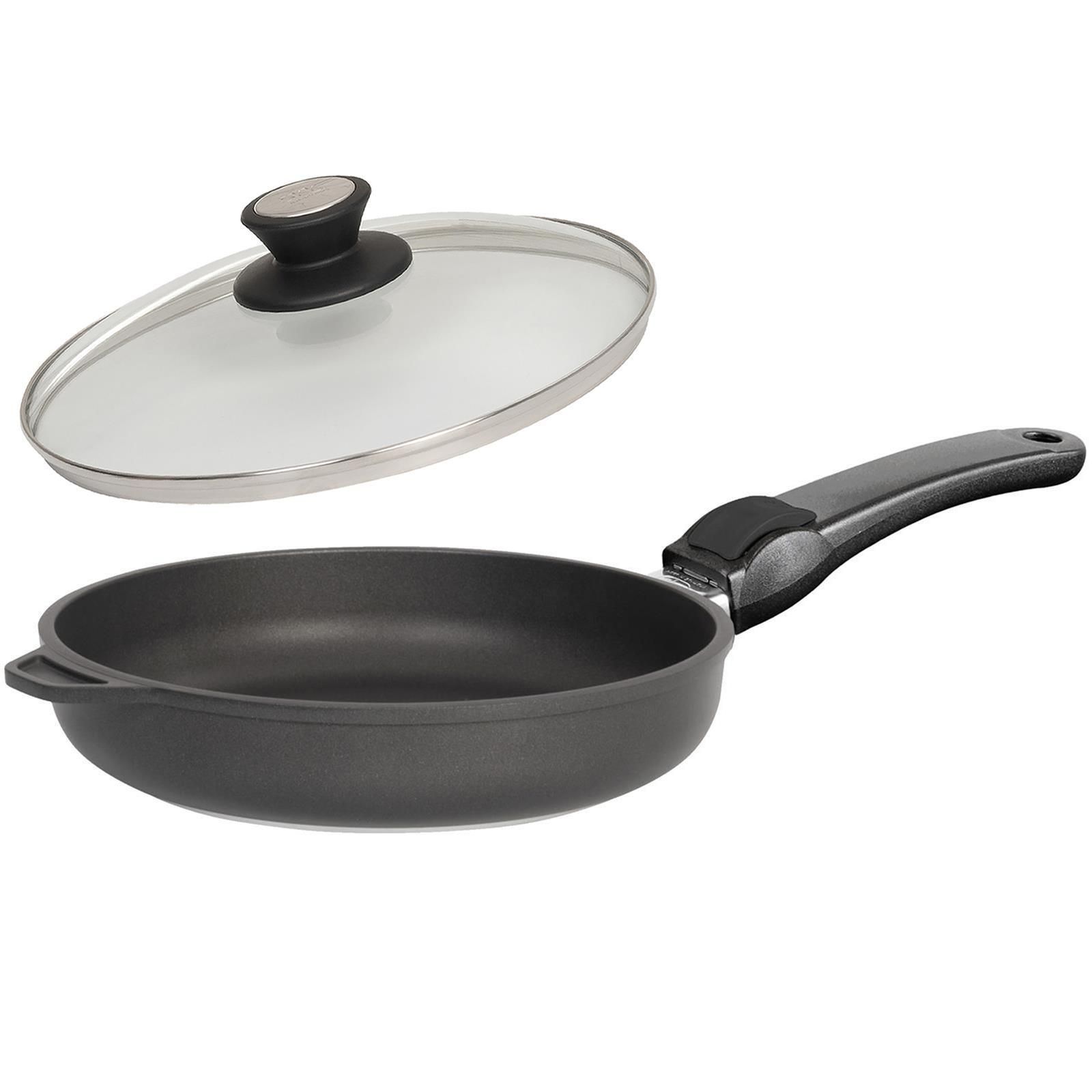 SKK Pfanne Ø 24 cm Aluguss Hochrand-Bratpfanne Antihaft Griff abnehmbar & Deckel