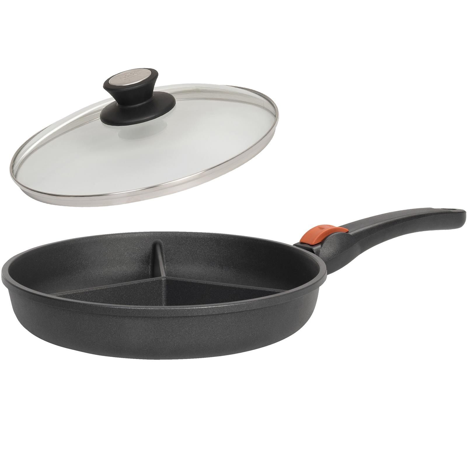 SKK Pfanne 28 cm Bratpfanne 3-geteilt Induktion Griff abnehmbar Deckel aus Glas