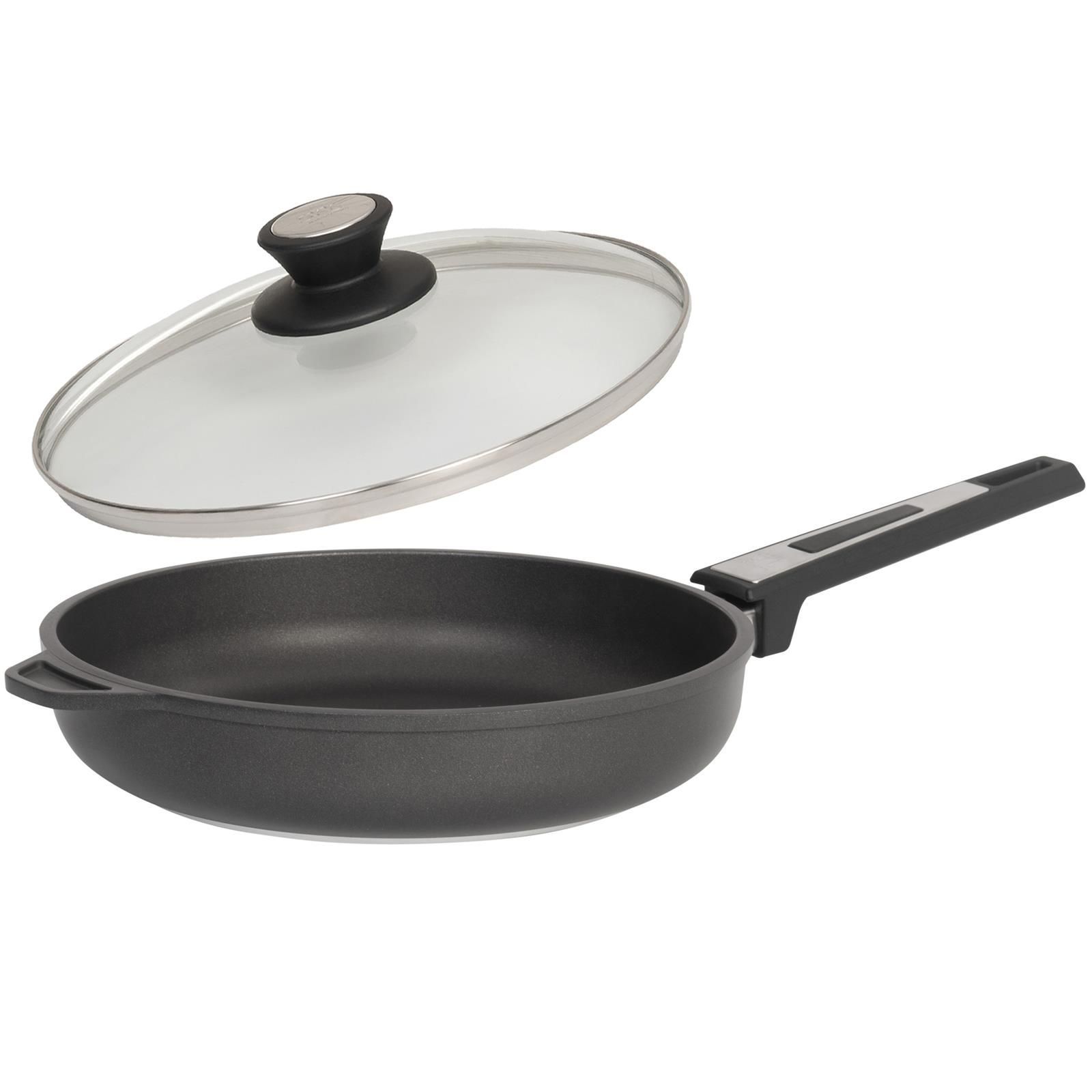 SKK Pfanne 28cm Hochrand-Bratpfanne Induktion Guss beschichtet & Deckel aus Glas