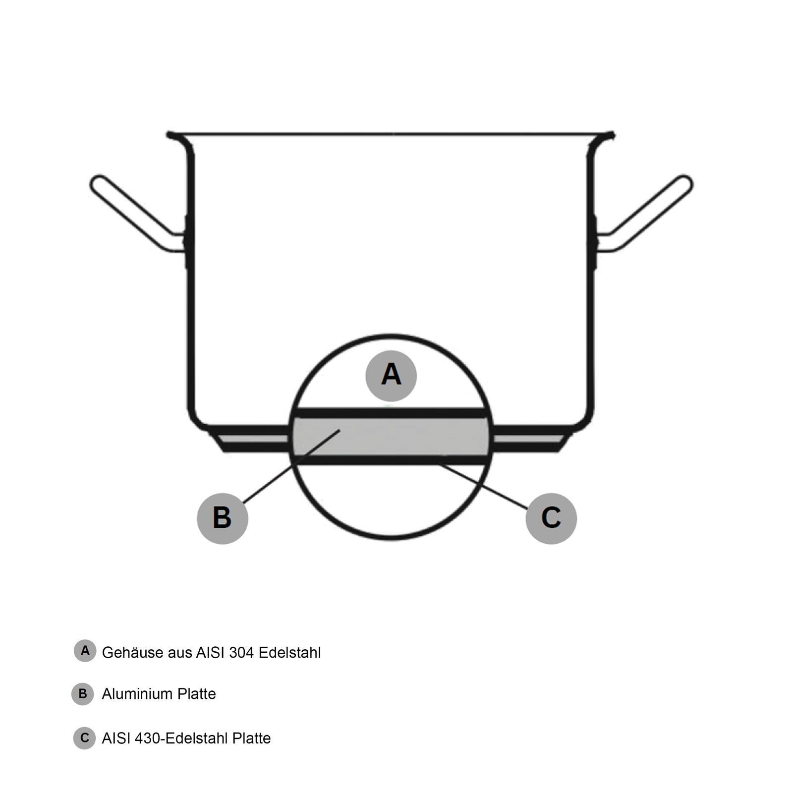 • SKK Profi Edelstahltopf Ø 24 cm Induktion Suppentopf Kochtopf & Edelstahl-Deckel