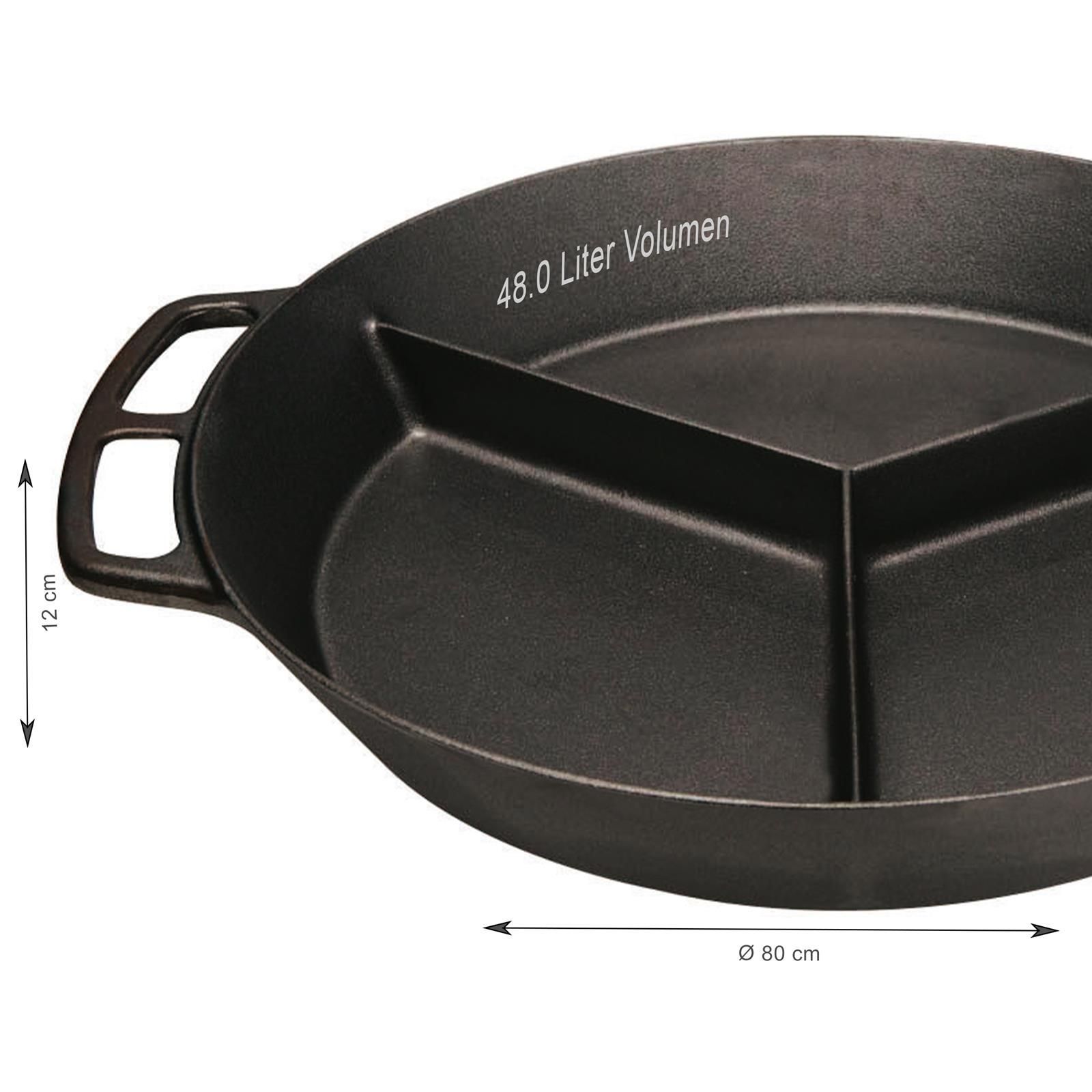 SKK Riesenpfanne 80 cm Partypfanne 3fach Steg XL Pfanne Antihaft Aluminiumguss