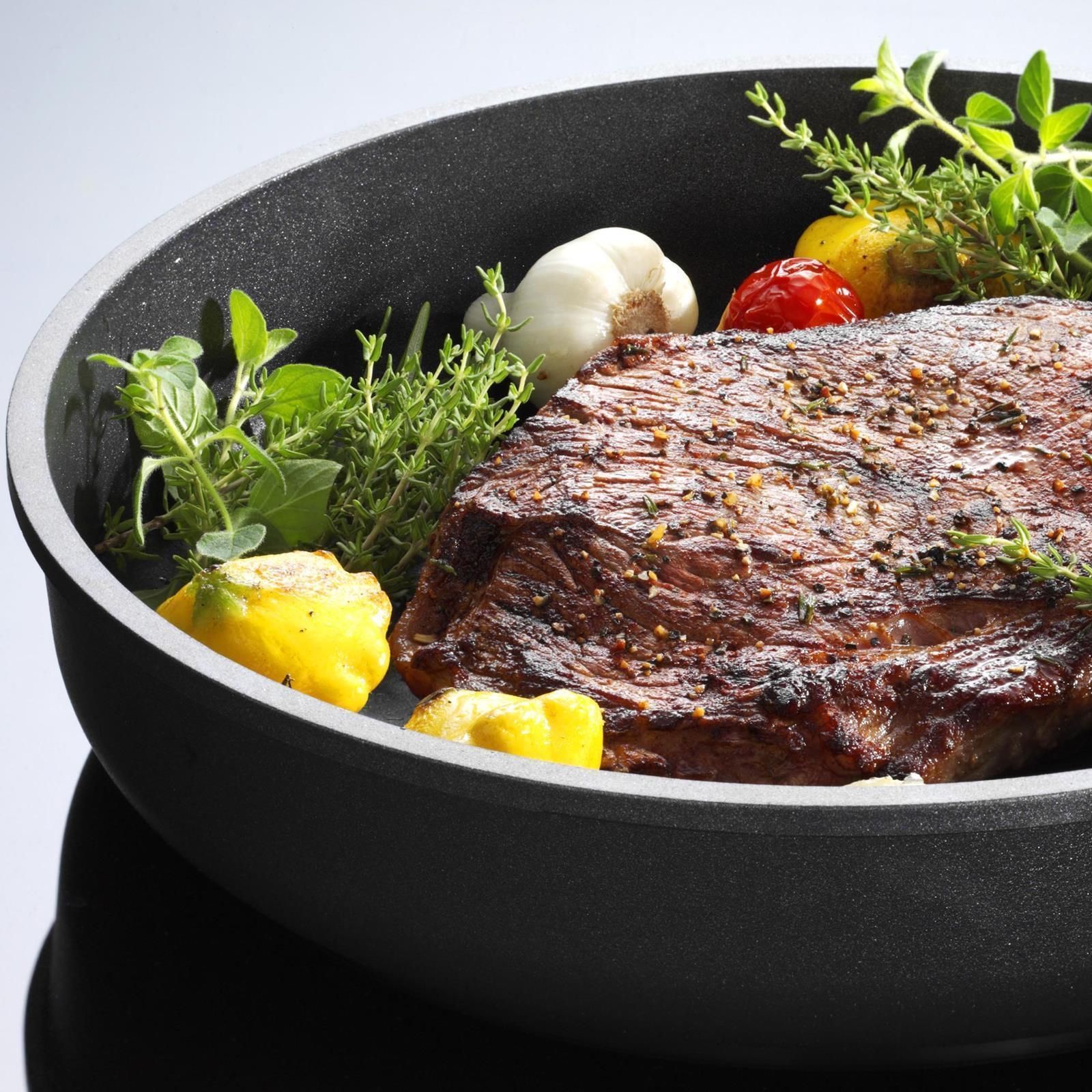 SKK Schmorpfanne 20 cm Antihaft Guss Hochrand-Pfanne abnehmbarer Griff & Deckel
