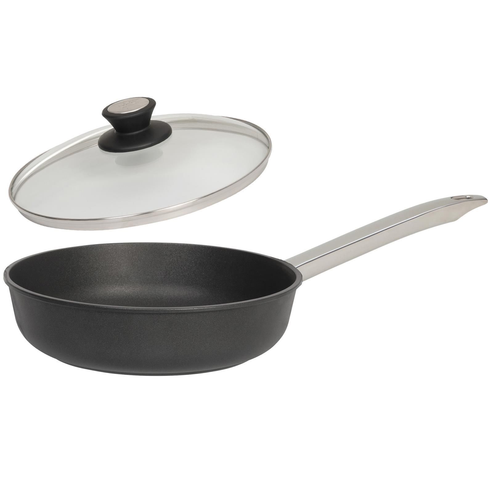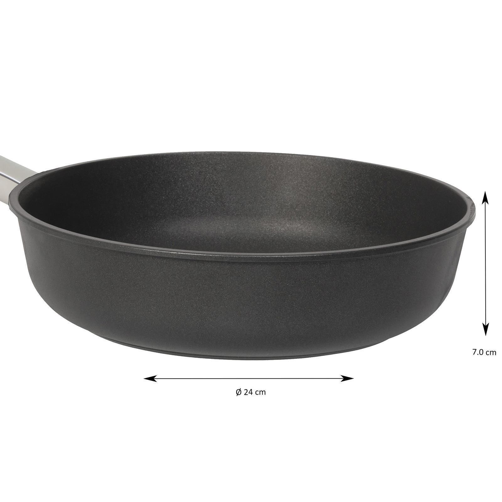SKK Schmorpfanne 24 cm Induktion Aluguss Antihaft Edelstahlgriff Deckel aus Glas
