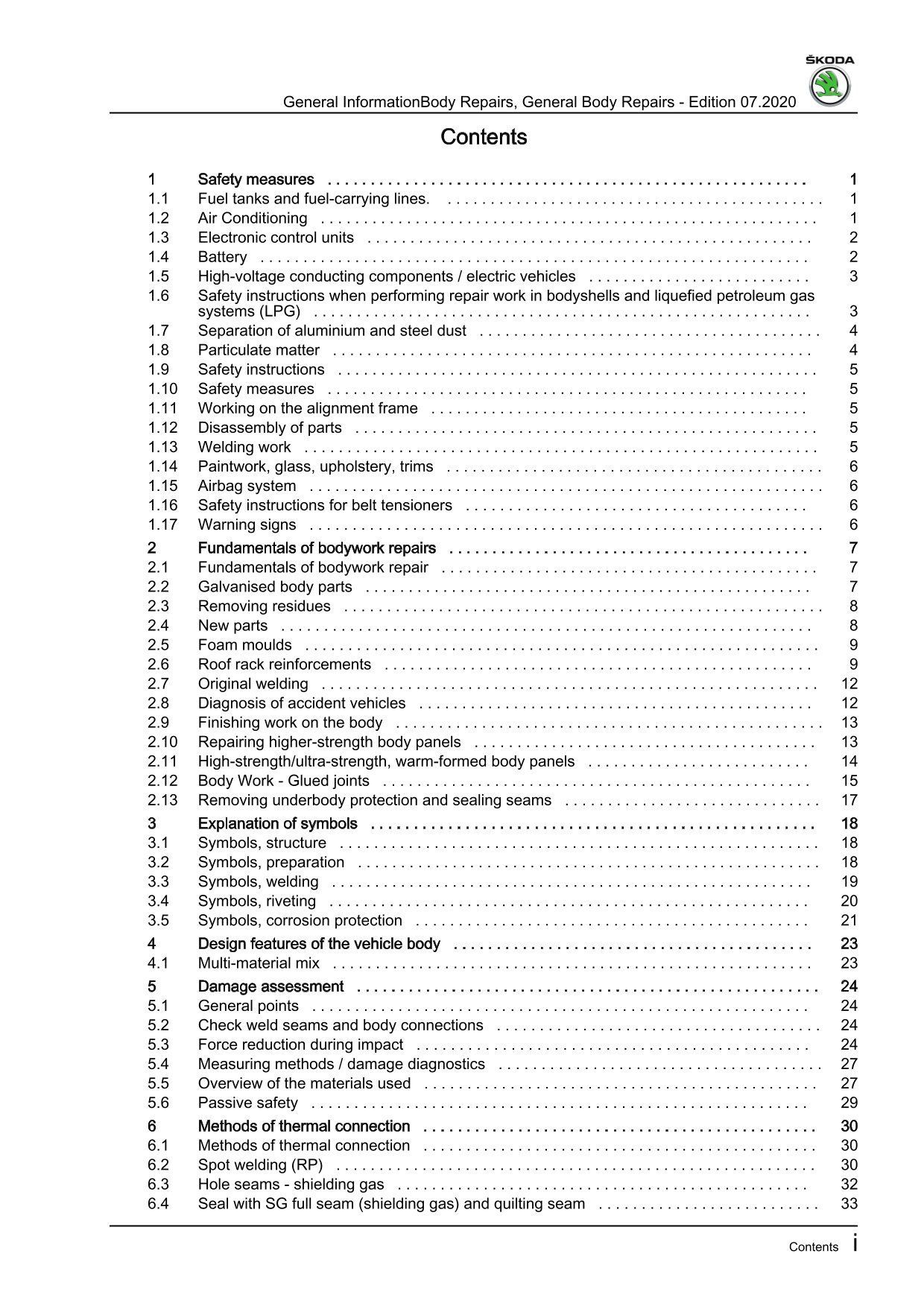 Skoda Citigo-e iV NE 2019-2020 general information body repairs manual eBook