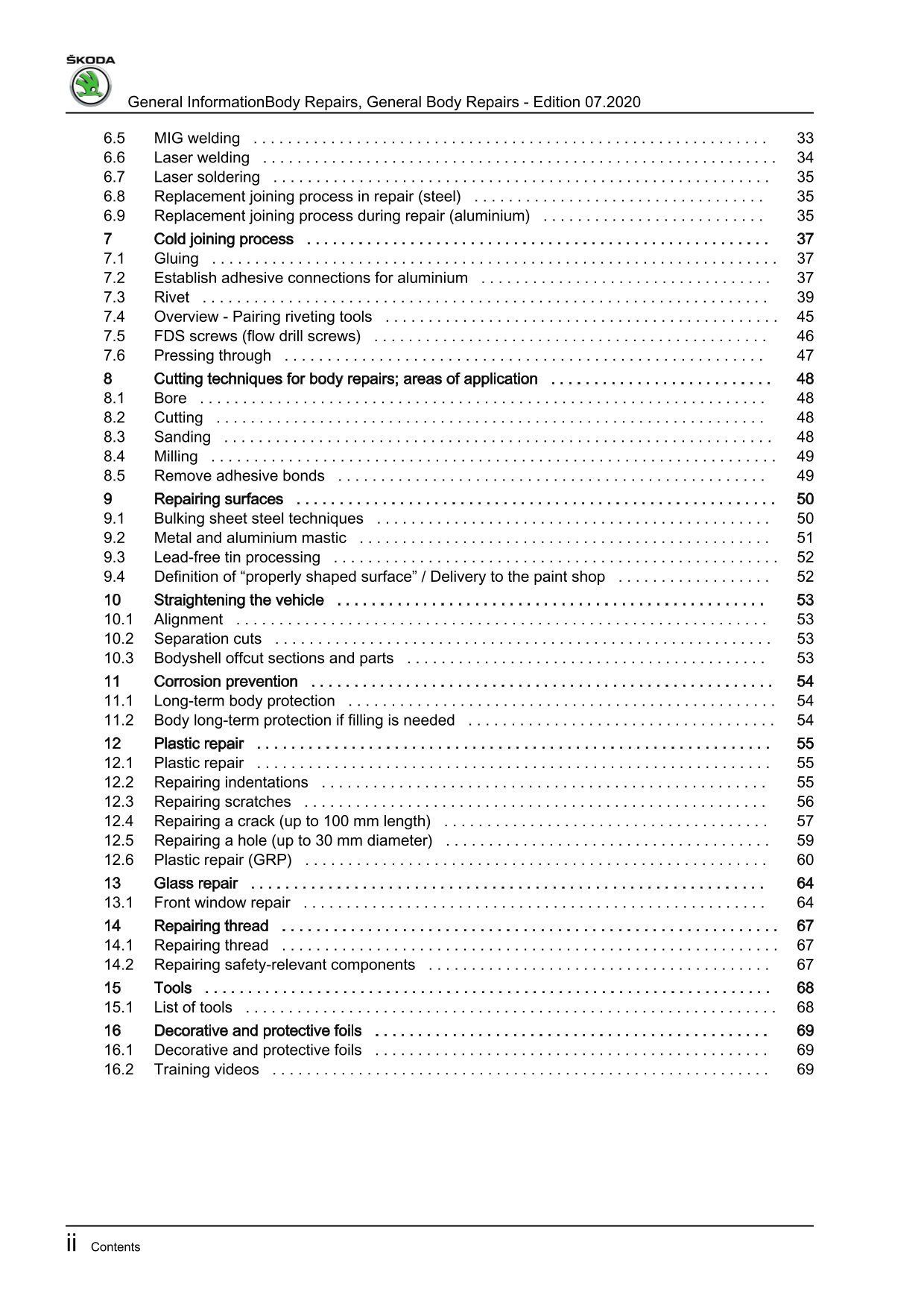 Skoda Citigo-e iV NE 2019-2020 general information paint repair manual eBook