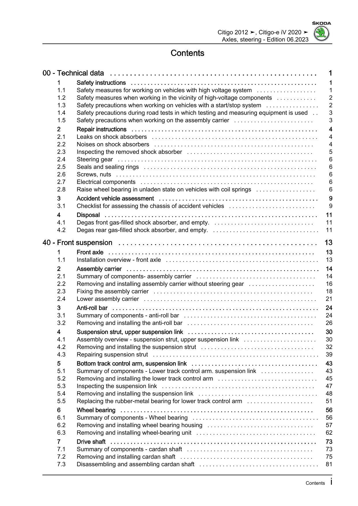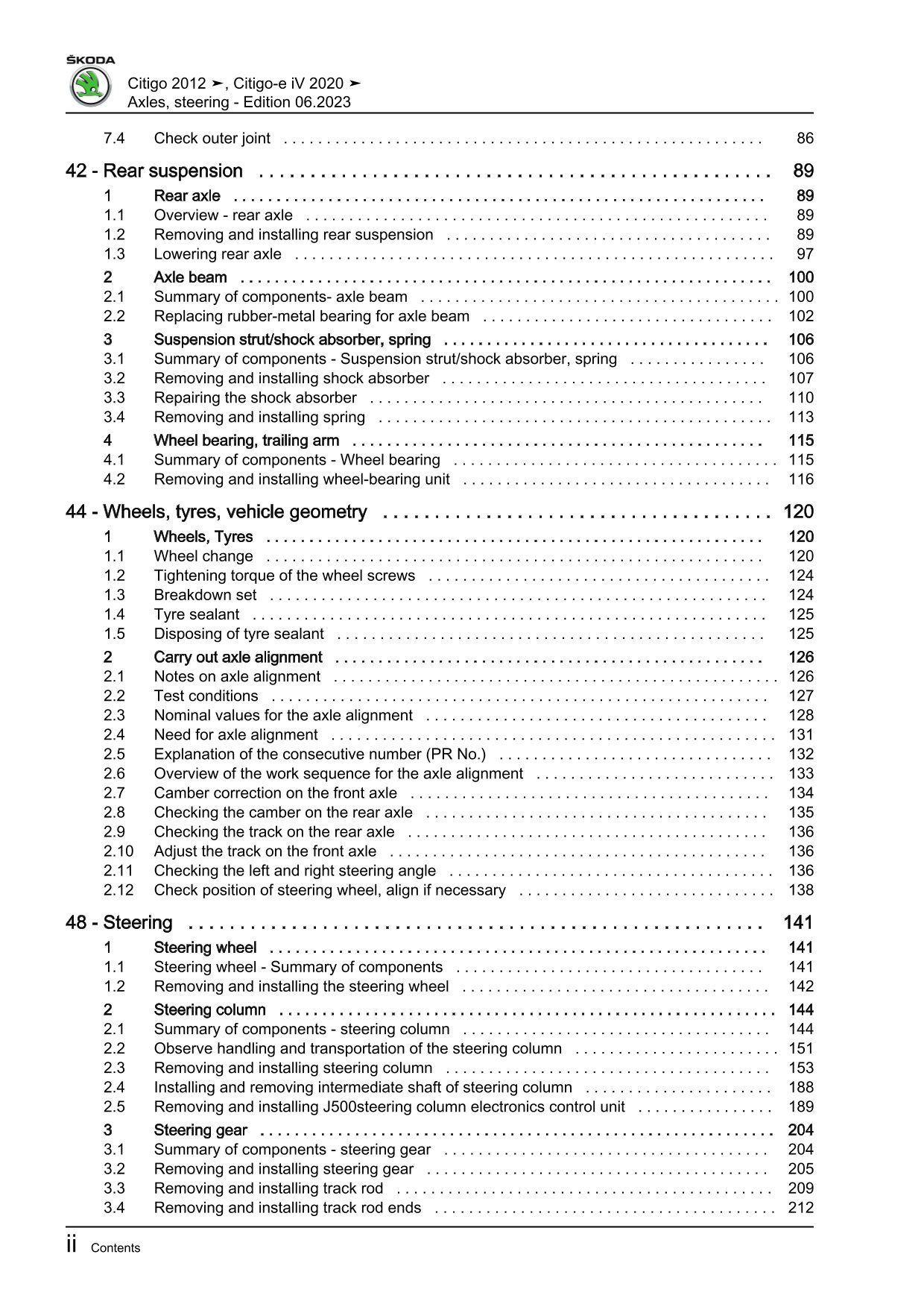 Skoda Citigo-e iV NE 2019-2020 running gear axles steering repair manual eBook