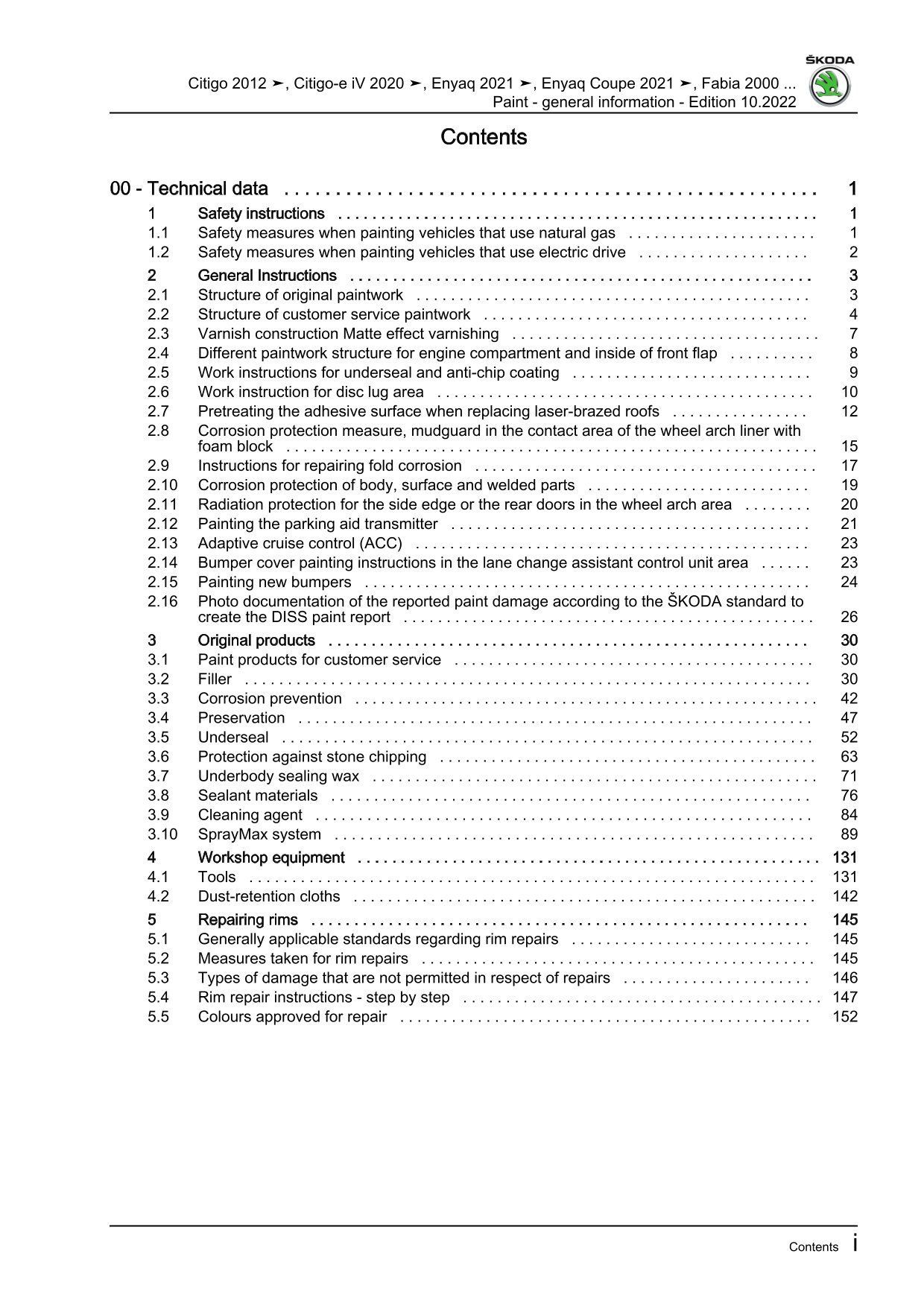 Skoda Fabia PJ from 2021 general information paint repair workshop manual eBook
