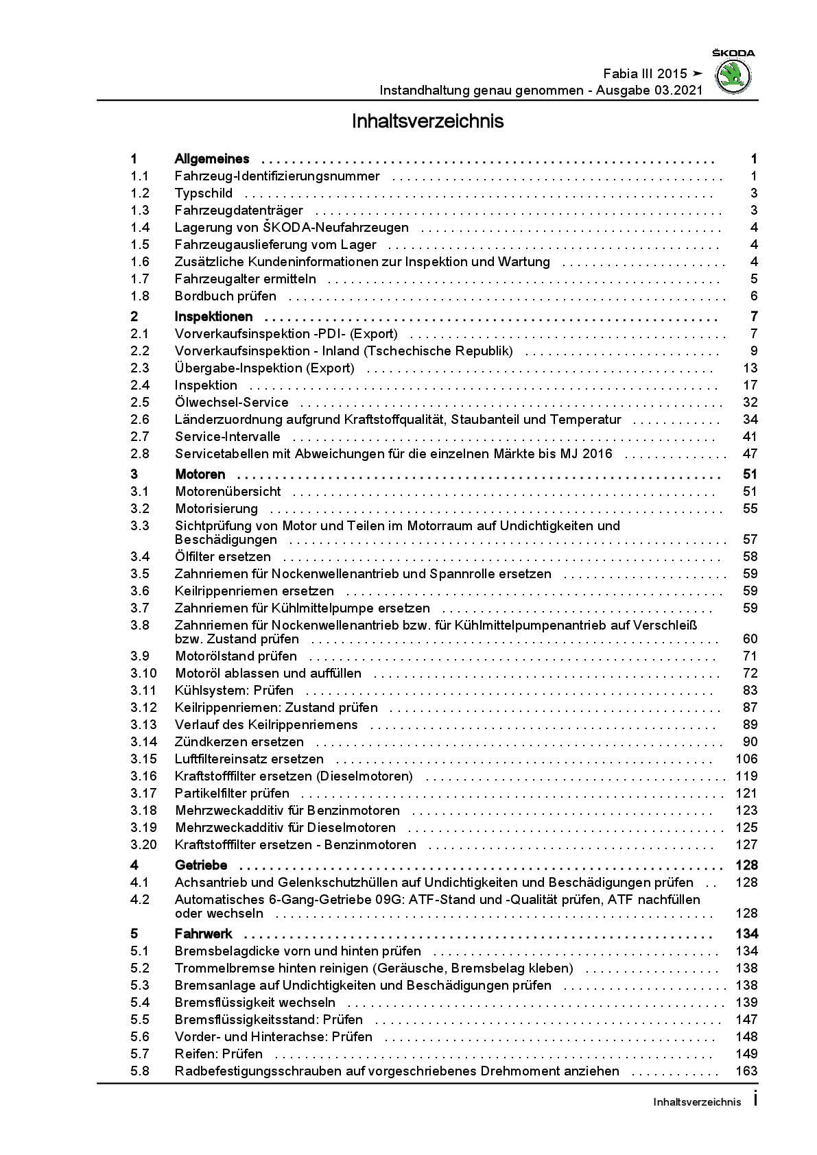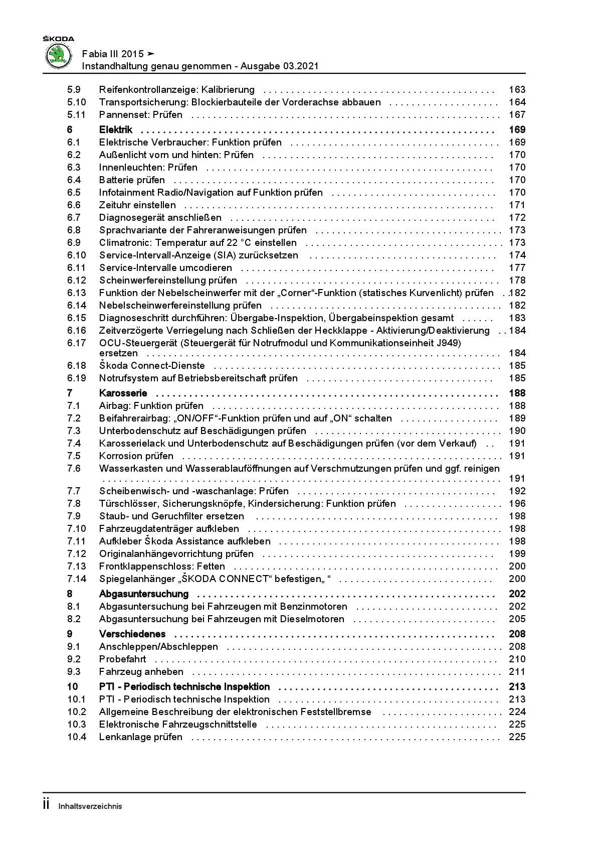 SKODA Fabia NJ 2014-2021 Instandhaltung Inspektion Wartung Reparaturanleitung