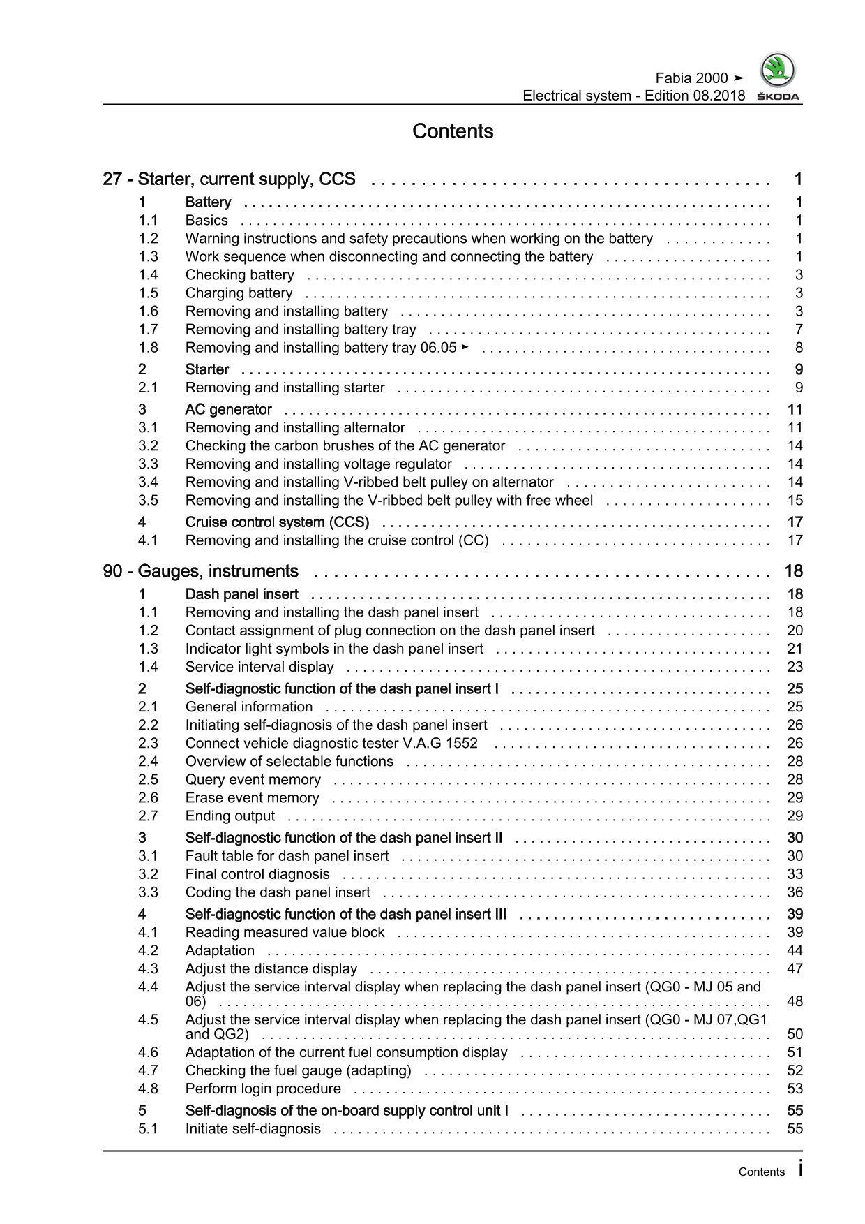 Skoda Fabia type 6Y 1999-2007 electrical system repair workshop manual eBook