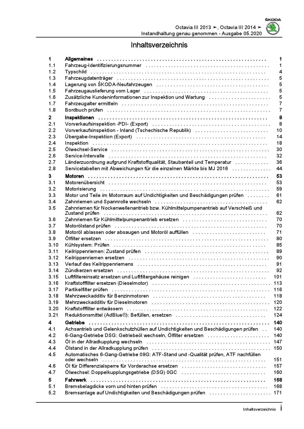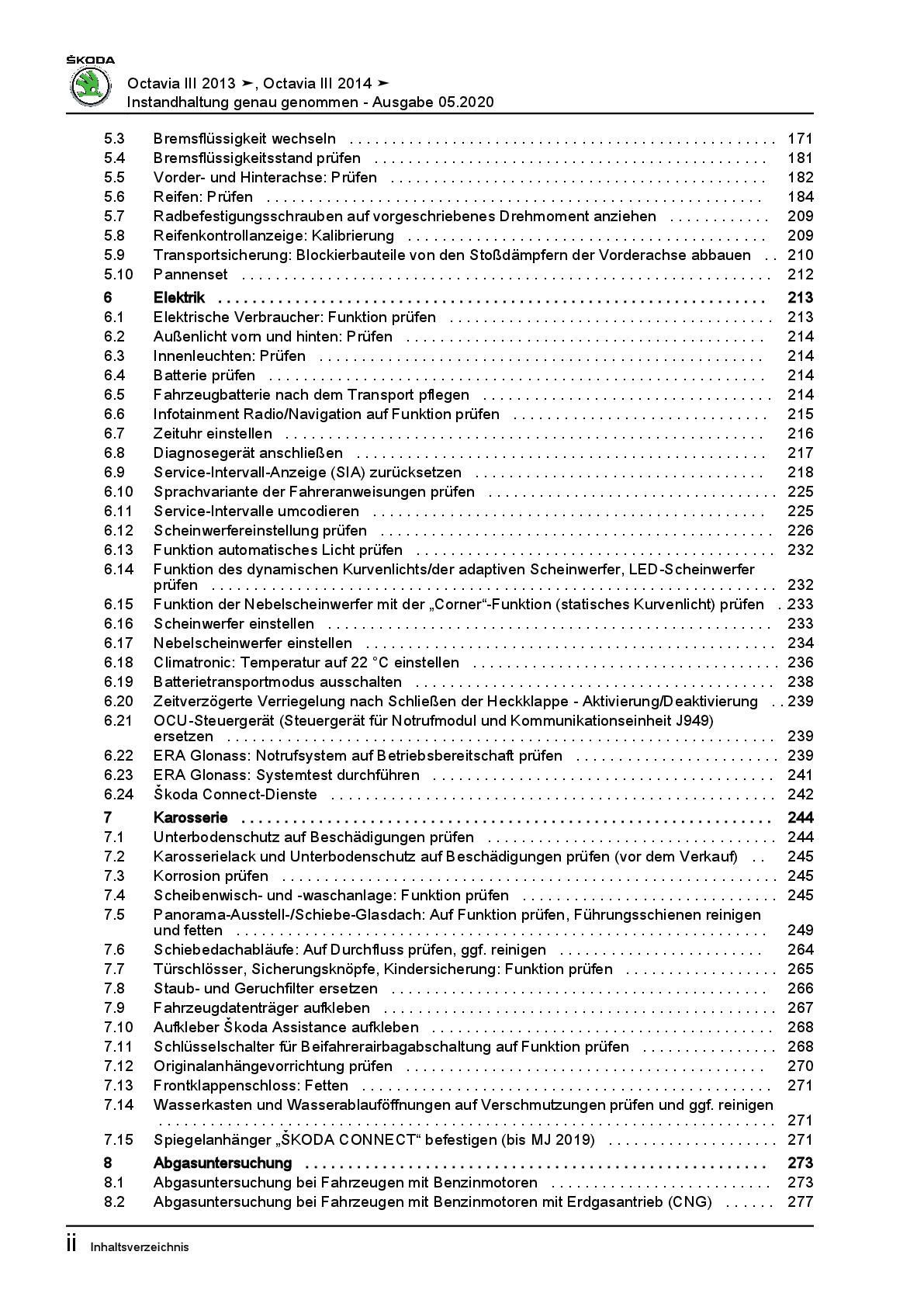 SKODA Octavia 5E 2012-2020 Instandhaltung Inspektion Wartung Reparaturanleitung