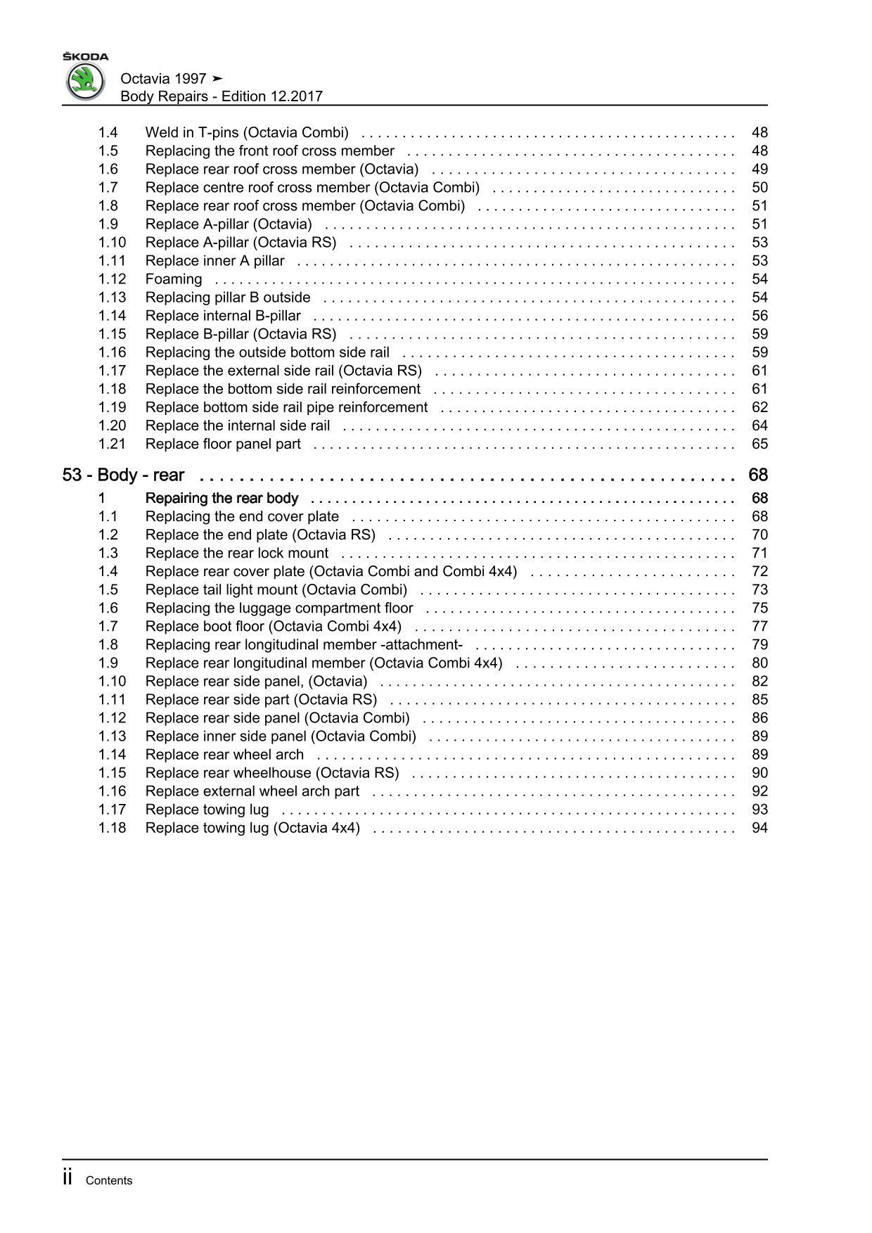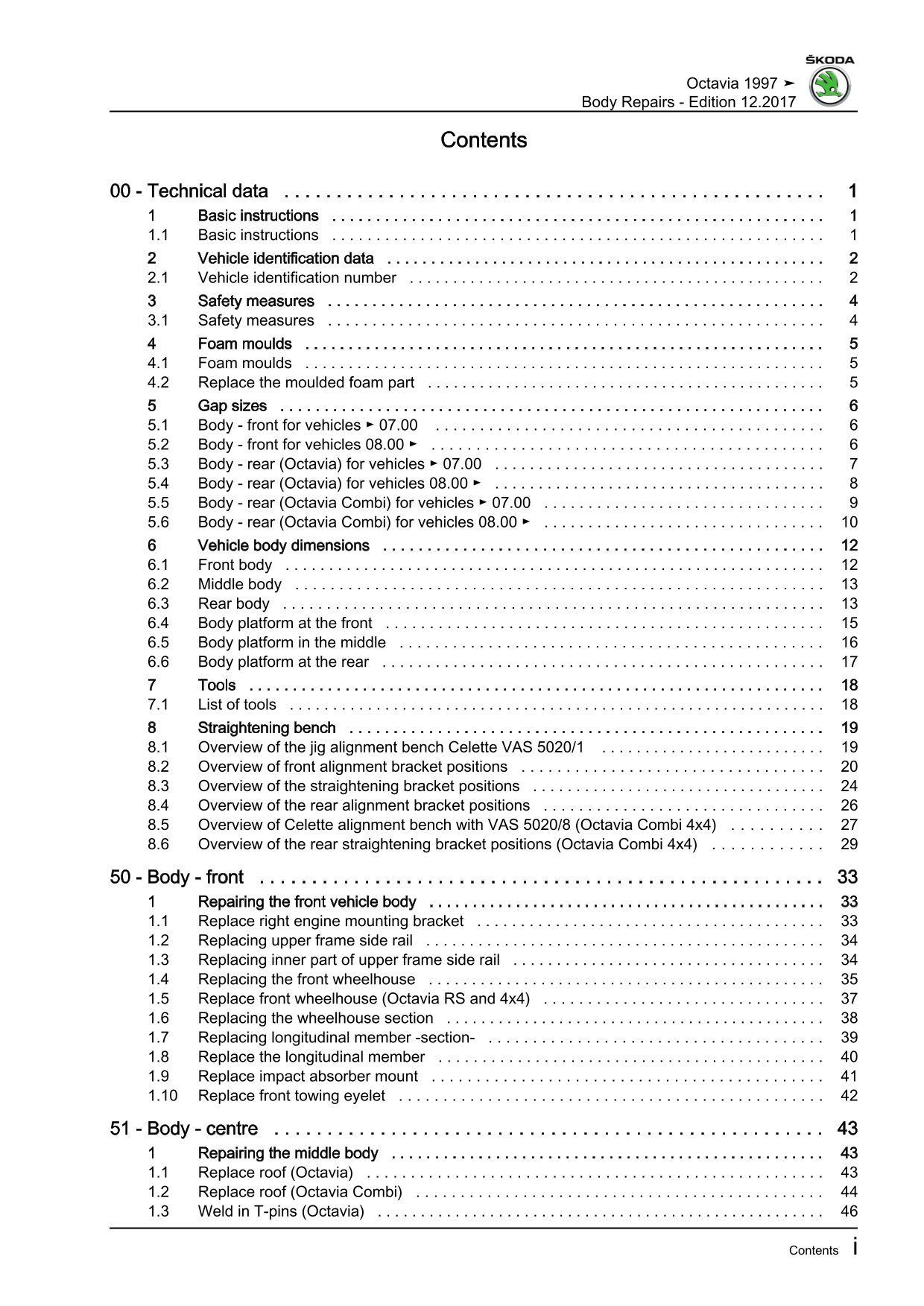 Skoda Octavia type 1U 1996-2010 general information body repairs manual eBook