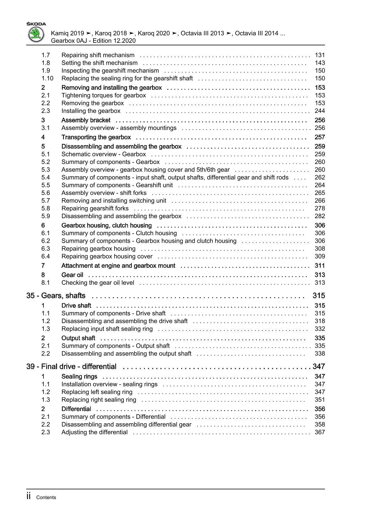 Skoda Scala NW from 2019 7 speed dual clutch gearbox 0CW repair manual eBook