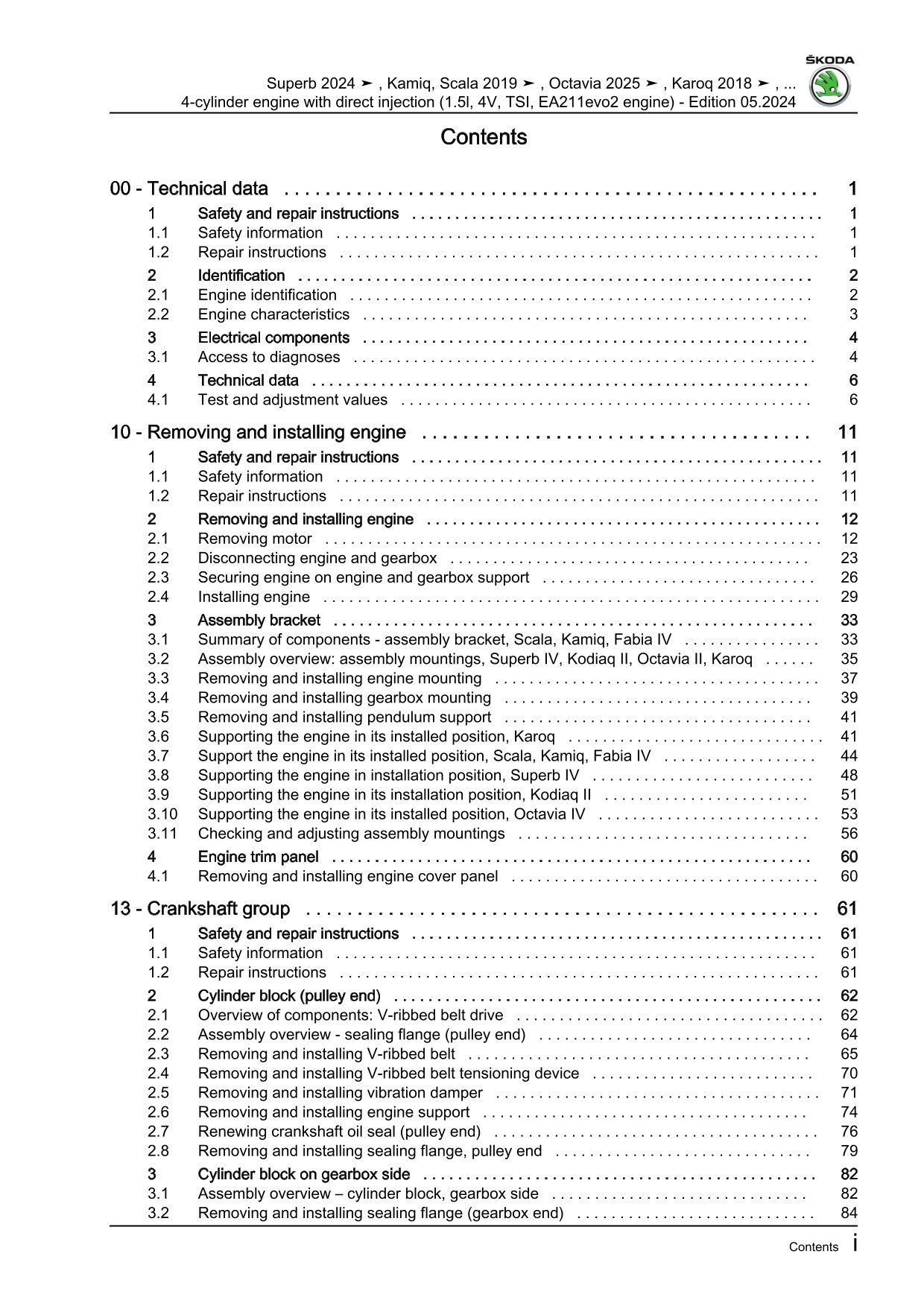 Skoda Scala type NW from 2019 4-cyl. petrol engines 150 hp repair manual eBook